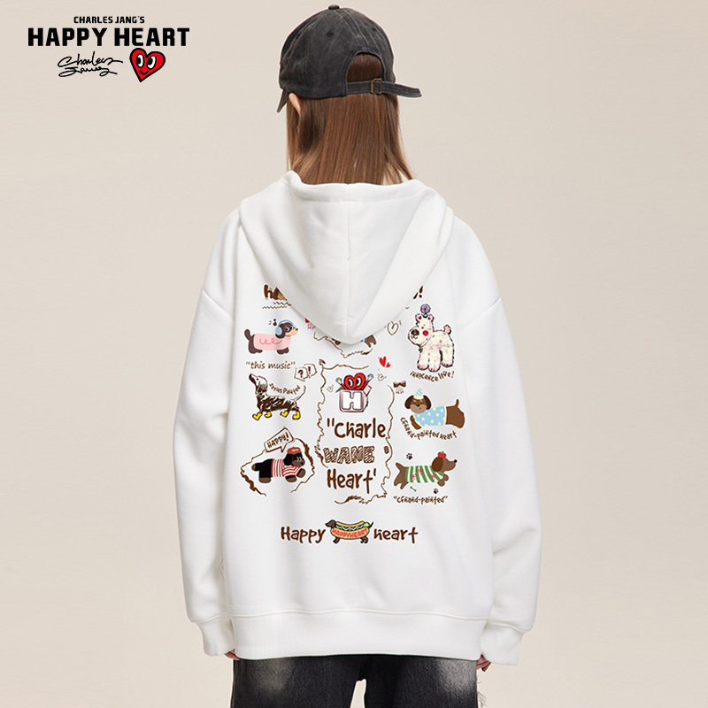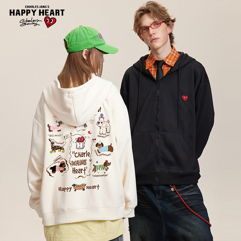 查尔斯桃心 美式小狗印花开衫卫衣男女款春秋季连帽休闲情侣外套