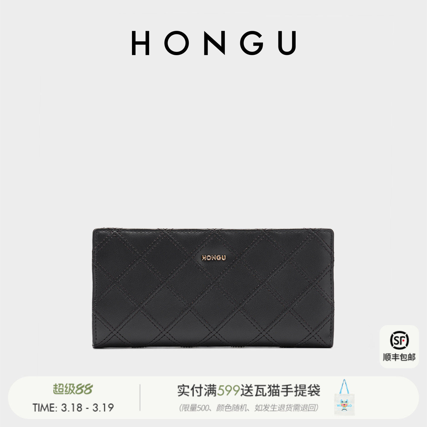 红谷新款牛皮钱包女长款时尚菱格钱夹多卡位折叠皮夹小手包手拿包