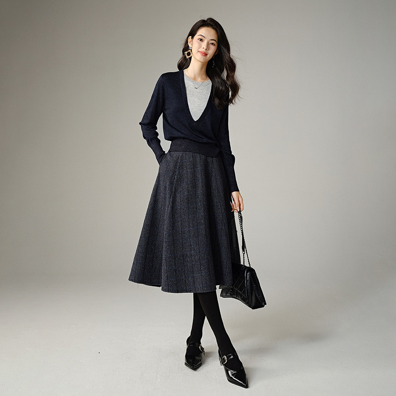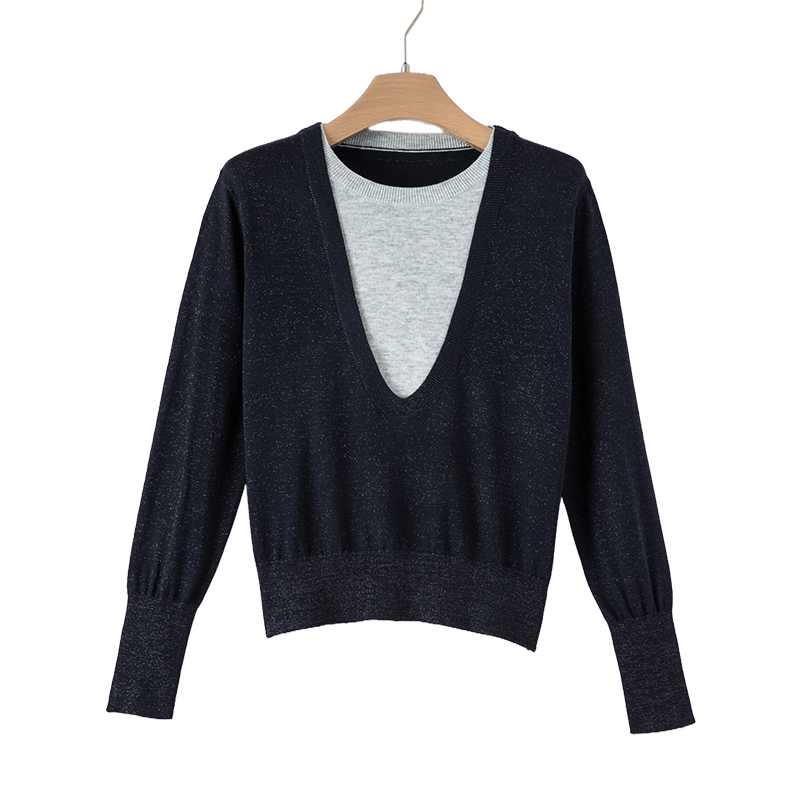 晚白2026年春新款含羊毛假两件设计感气质上衣高弹时尚针织衫女