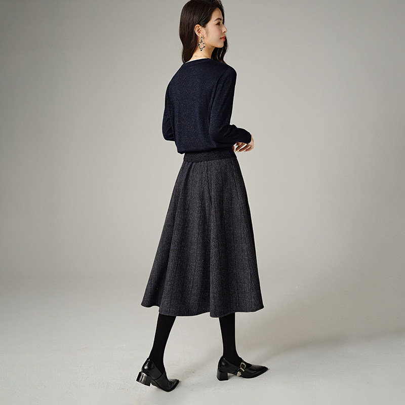 三福长袖上衣2025新款秋季圆领修身针织衫简约纯色内搭打底衫女装