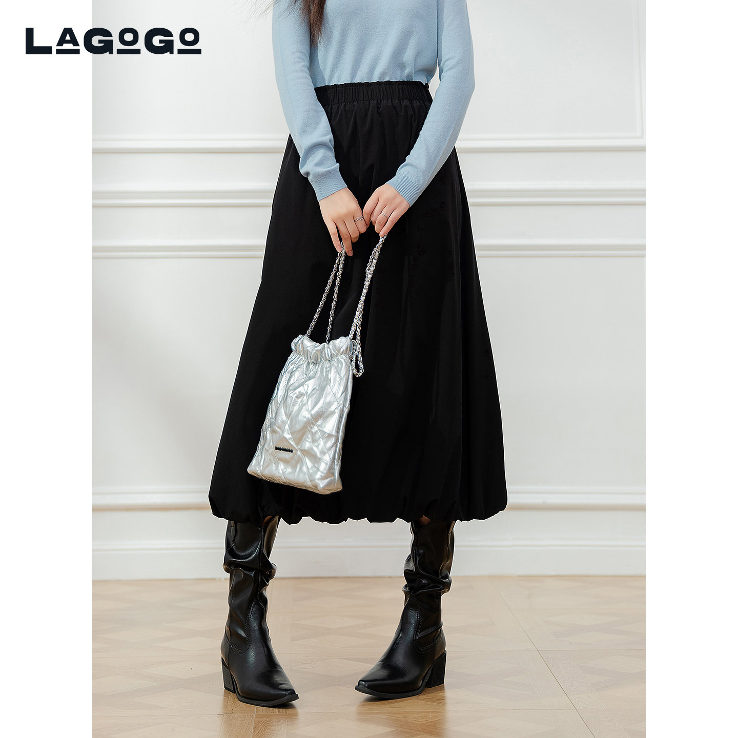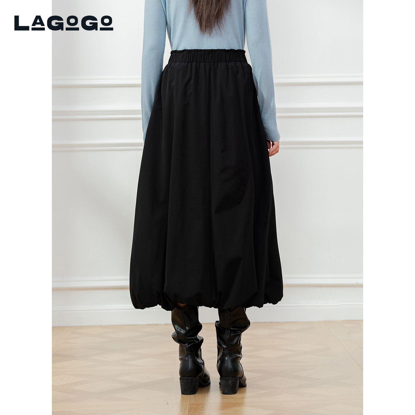 四面弹LAGOGO花苞半身裙女拉谷谷2026春款显瘦小黑裙OCBB338C81