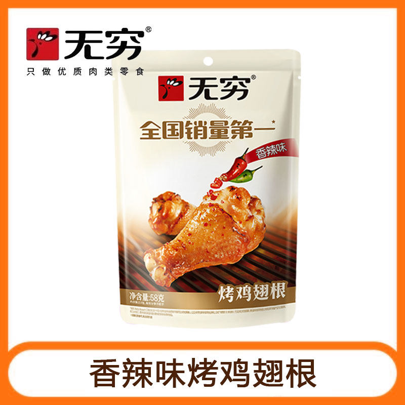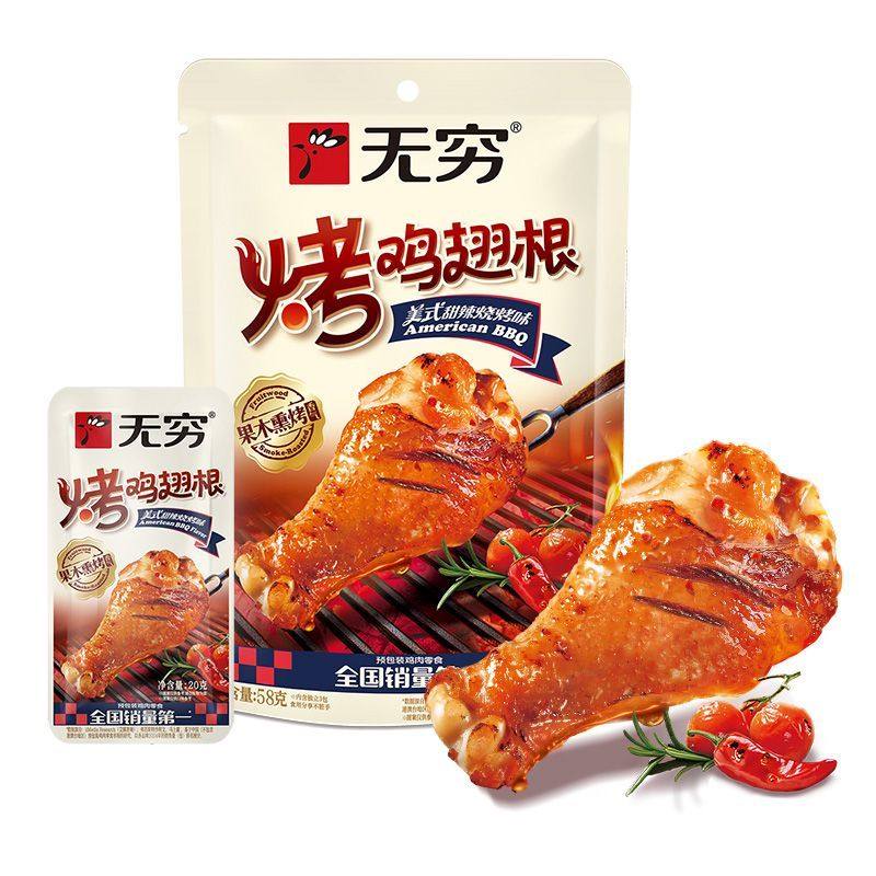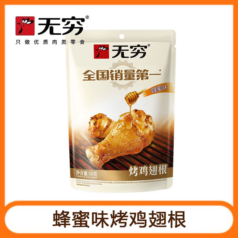 无穷烤鸡翅根58g蜂蜜味香辣烤小腿蜜汁小鸡腿追剧解馋休闲小零食