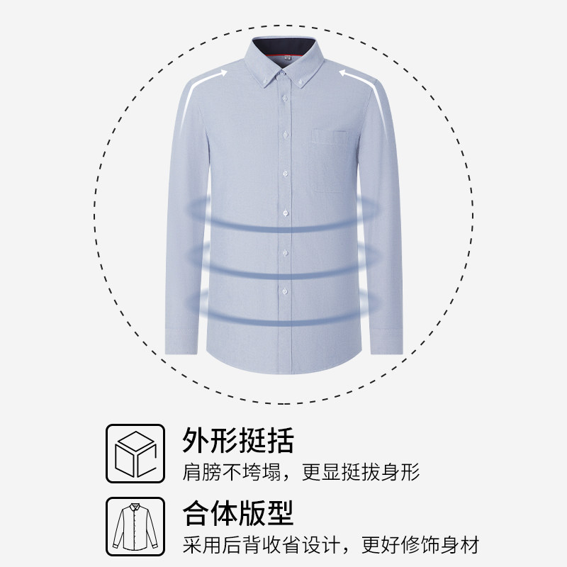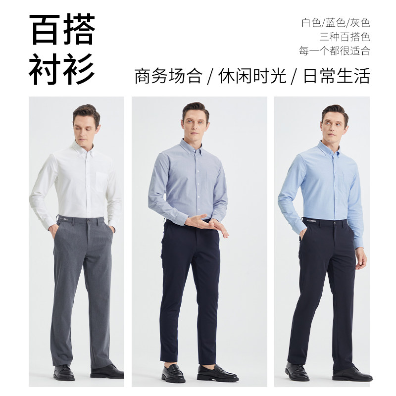 杉杉男士衬衫长袖2025春秋季新款纯棉牛津纺免烫商务休闲衬衣男款