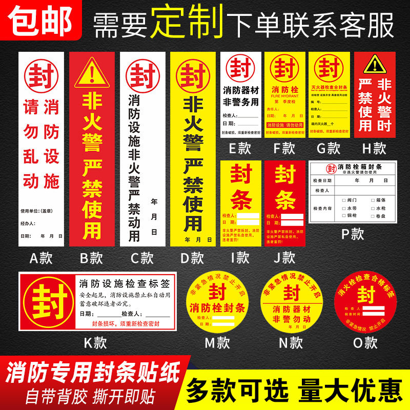 消防栓封条贴纸消防柜封条消防器材消火栓消防箱封条贴纸不干胶定制消防标识牌灭火器年检标签消防栓门箱贴纸