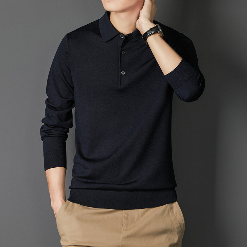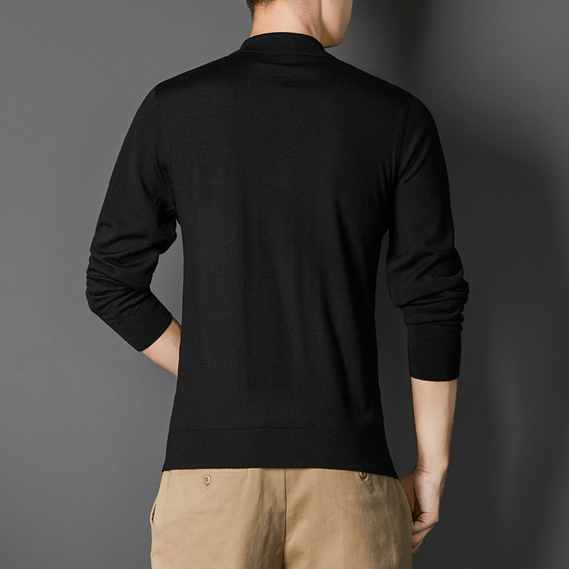 恒源祥100%绵羊毛衫男士polo打底衫翻领长袖秋冬中年爸爸纯色毛衣