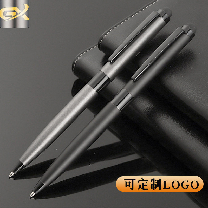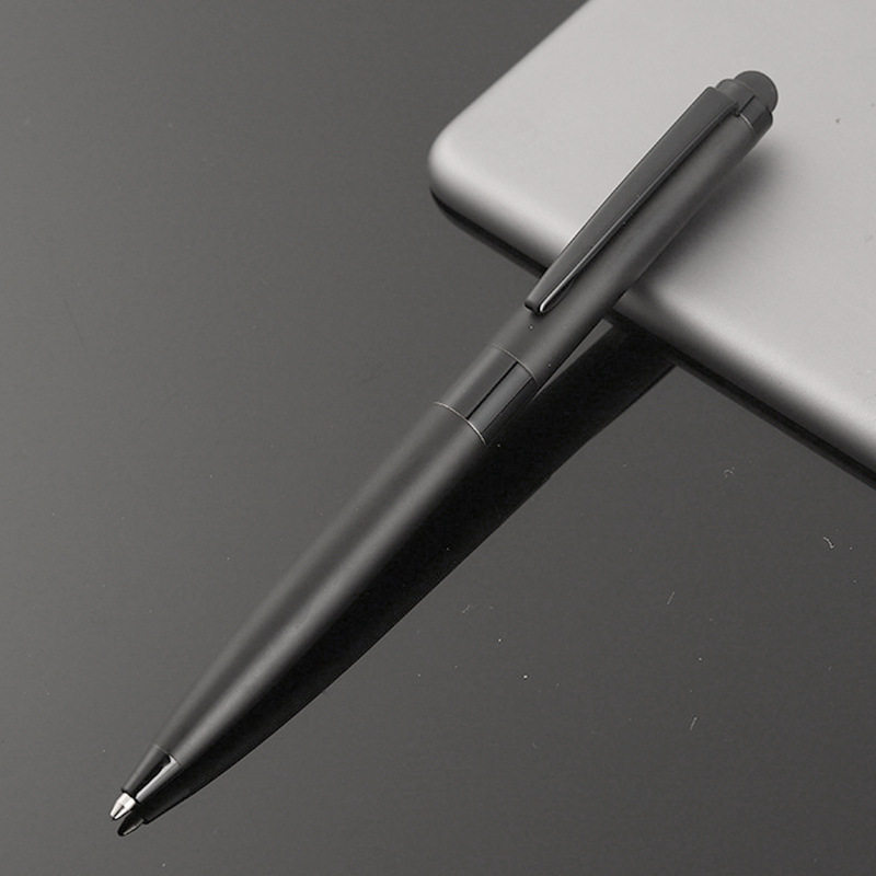 亚马逊金属不锈钢杆签字笔电容头旋转圆珠笔按压式办公宝珠笔
