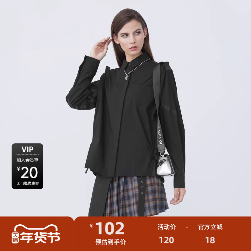 森马长袖衬衫女大翻领雪纺衬衣短背心俏皮可爱春季宽松两件套气质