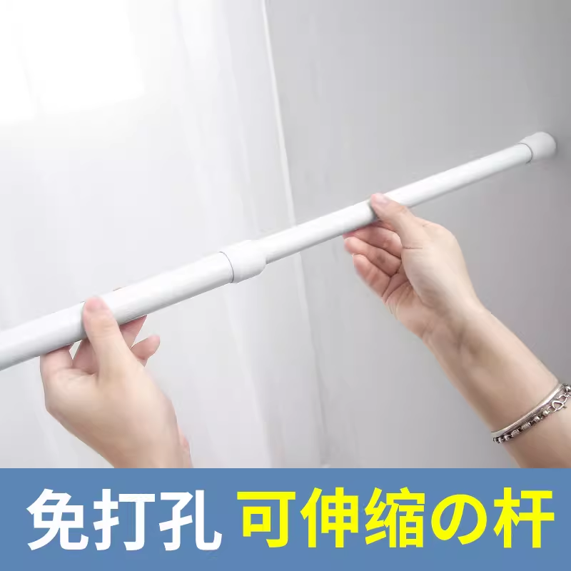 免打孔伸缩杆简易安装浴帘杆子加厚卫生间半帘杆窗帘杆单杆烤漆杆