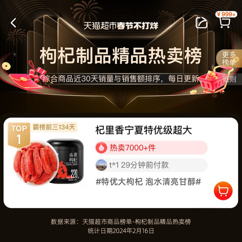 北京同仁堂枸杞子宁夏中宁特优级头茬红枸杞大颗粒正宗苟官方旗舰