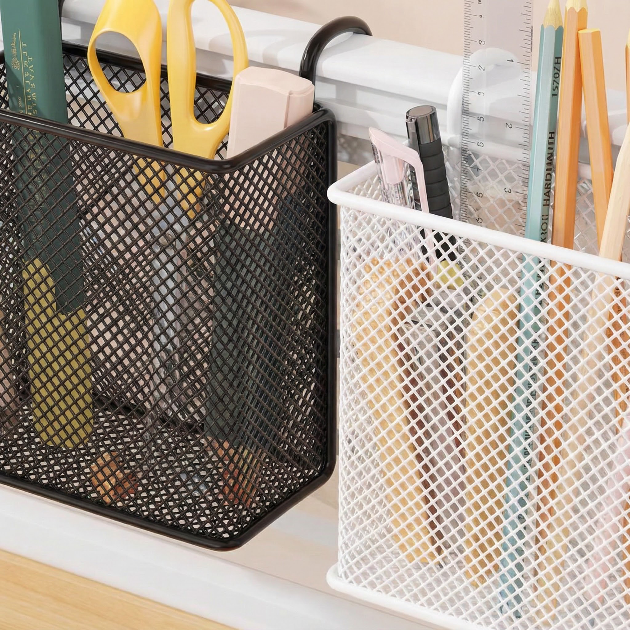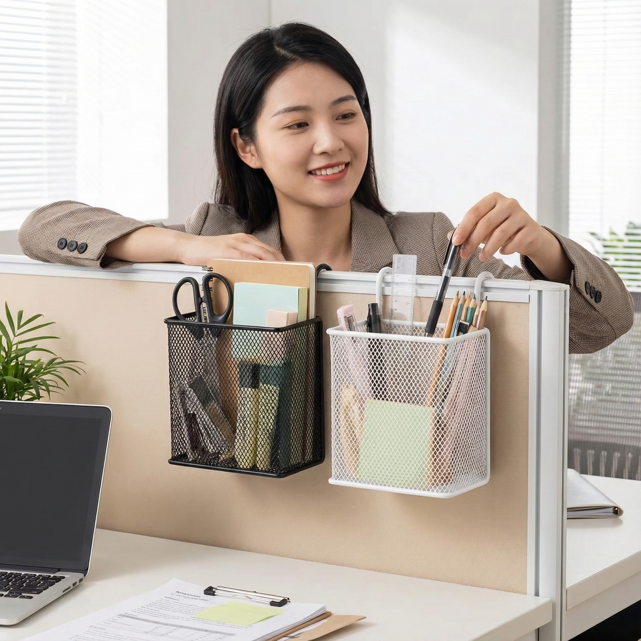新款悬挂式笔筒办公室桌面挂篮挂钩收纳盒金属大容量隔板屏风工位