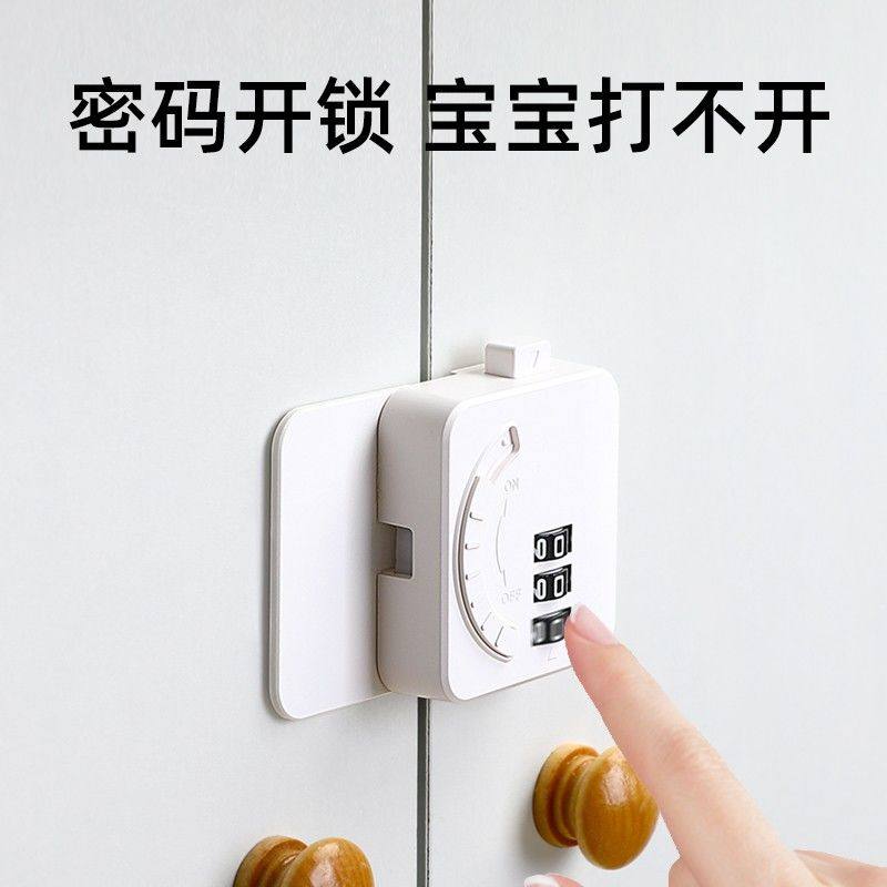 抽屉卡扣宝宝开柜子密码锁免打孔儿童安全锁锁扣冰箱直角衣柜柜门