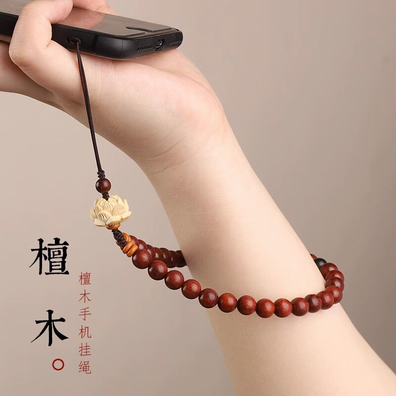新款原创檀木手机链黄杨木崖柏莲花手机挂件钥匙扣包挂防丢挂手腕