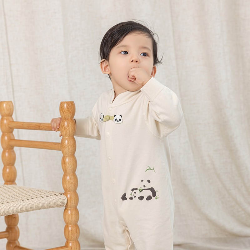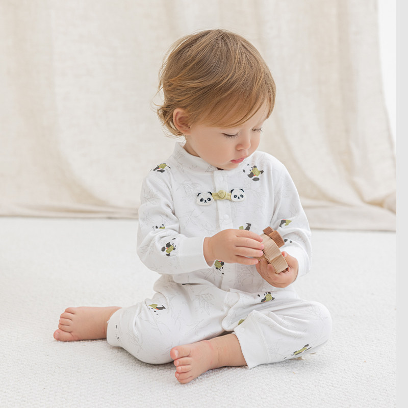 木生棉婴儿连体衣春秋季宝宝睡衣服国风纯棉长袖哈衣居家爬服秋装