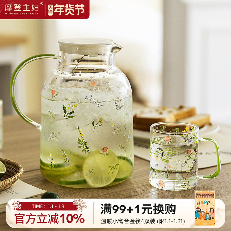 摩登主妇冷水壶耐高温泡茶壶家用凉水玻璃杯大容量凉水壶杯子套装