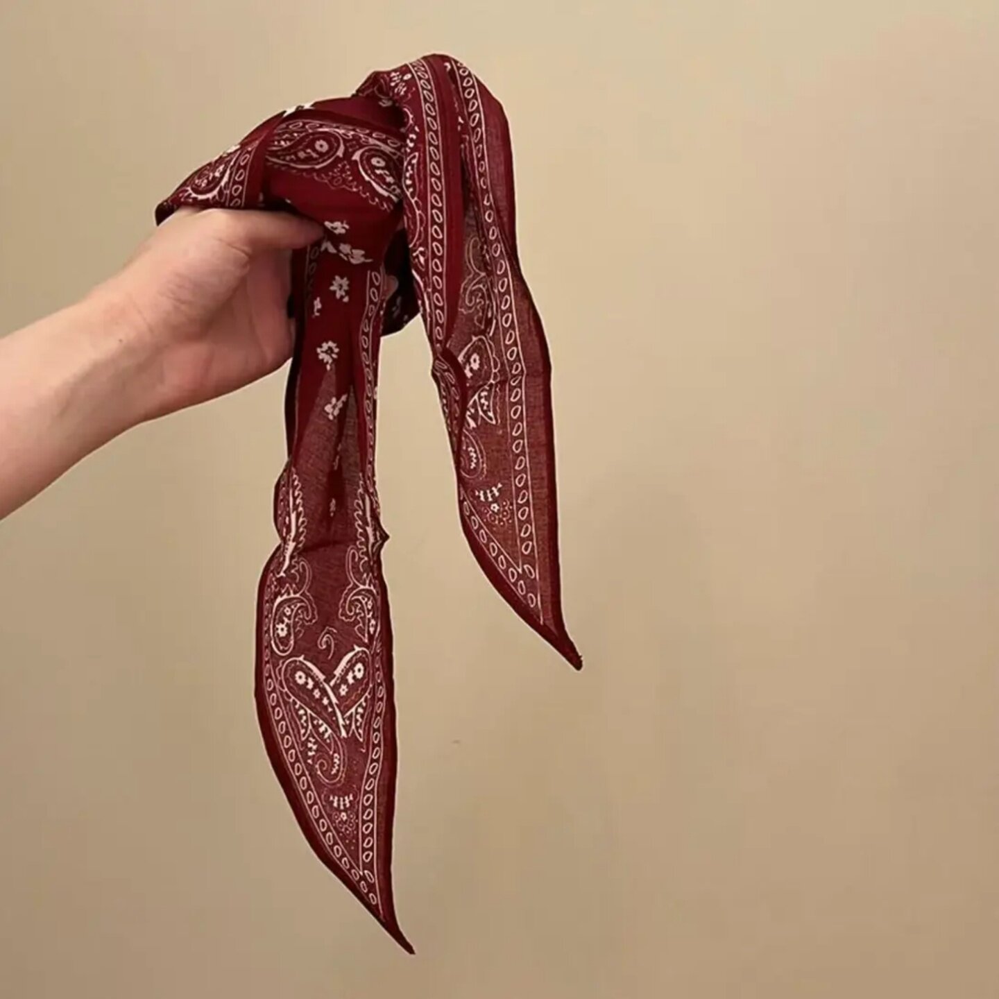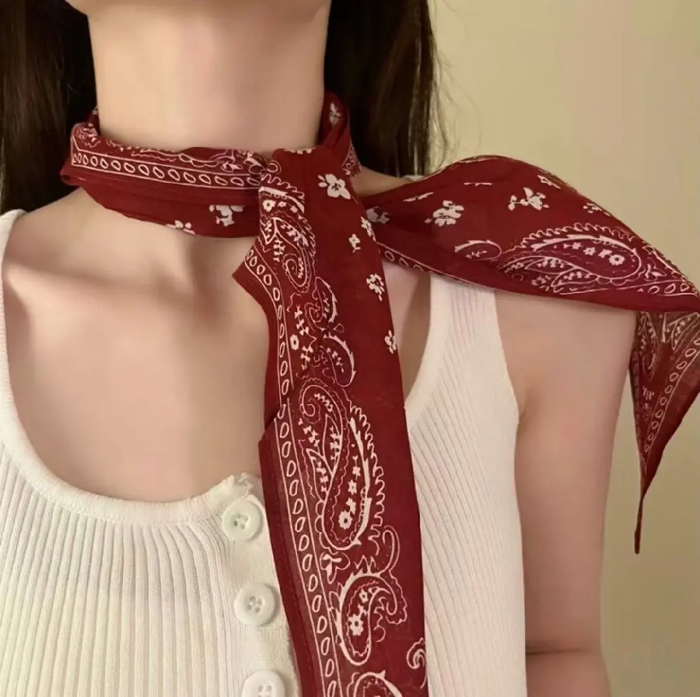 复古三角腰果花低马尾绑发飘带丝巾女款高级感时尚红色领巾