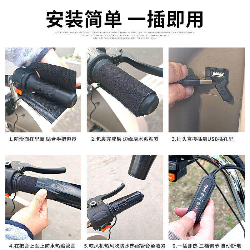 电动车电加热手把USB充电加热把手电热手把套电瓶摩托车保暖把套