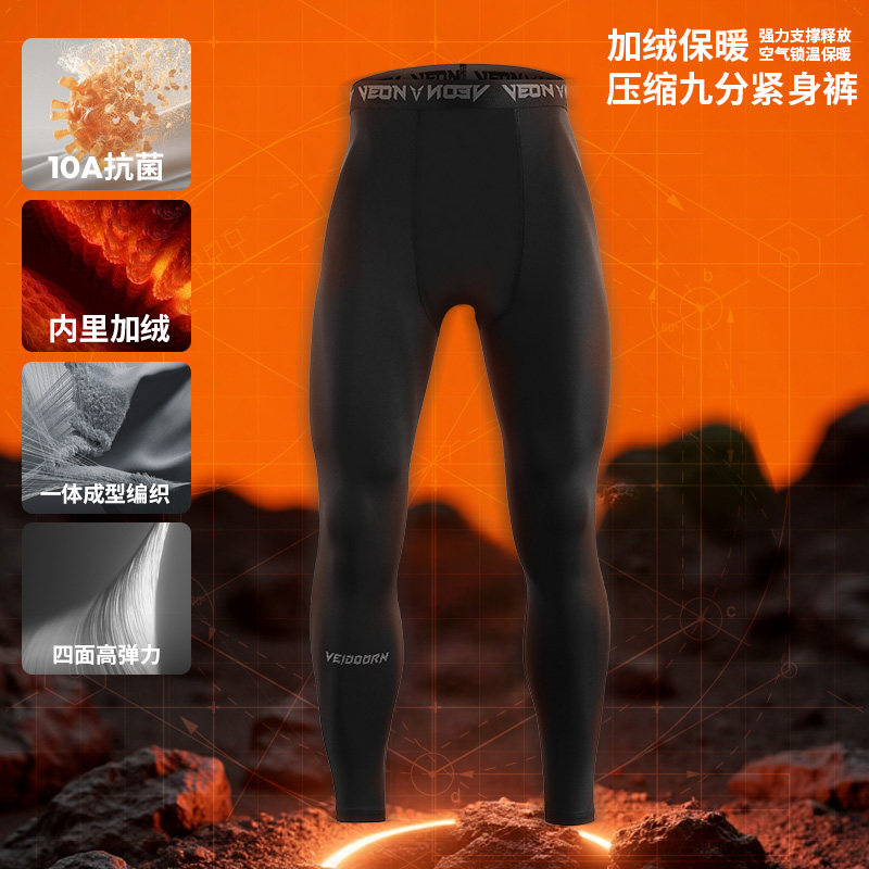 维动紧身裤男士加绒秋冬保暖篮球运动健身速干抗菌高弹九分压缩裤