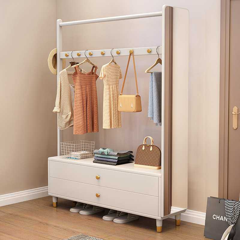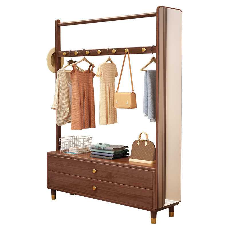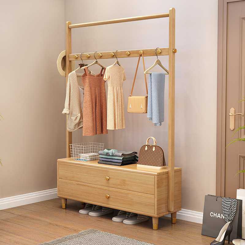 实木衣帽架穿衣镜落地客厅可坐换鞋凳一体挂衣架卧室多功能收纳架