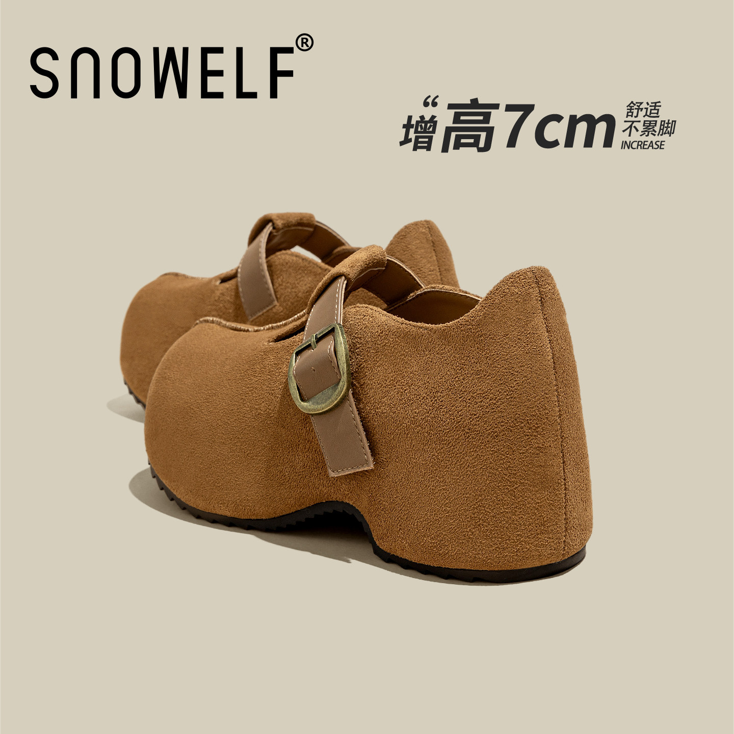 复古松糕全包厚底勃肯鞋女2025新款冬季小个子内增高休闲鞋拖鞋子