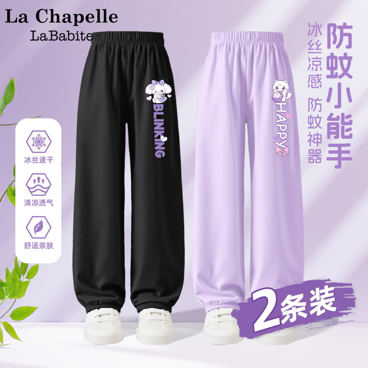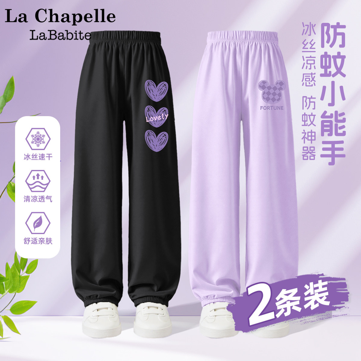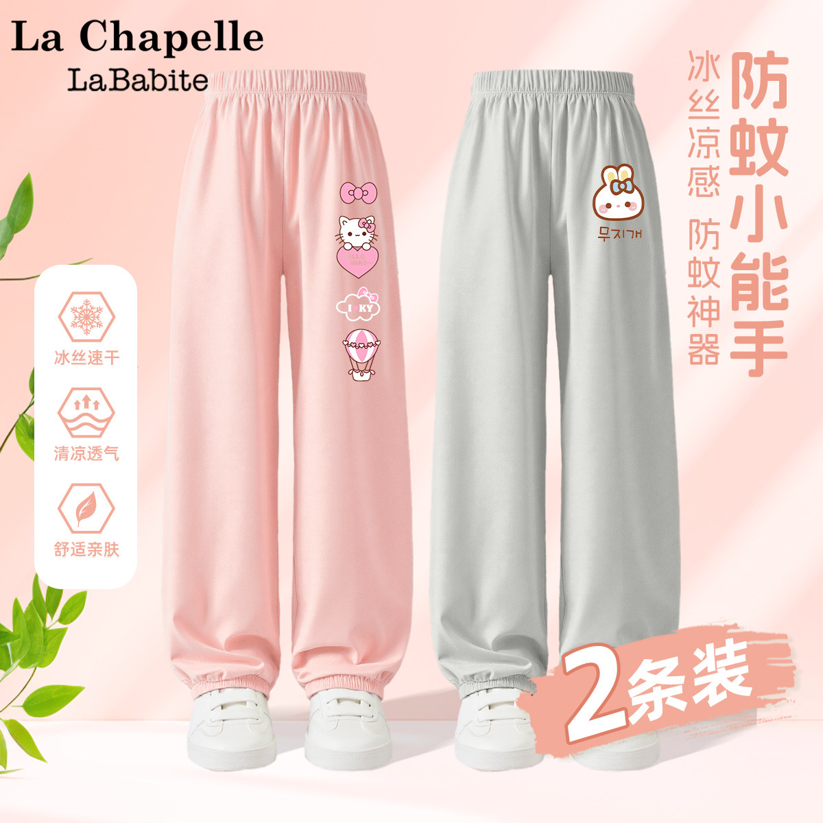 拉夏贝尔联名女童夏季裤子2025新款童装冰丝防蚊裤儿童夏装运动裤