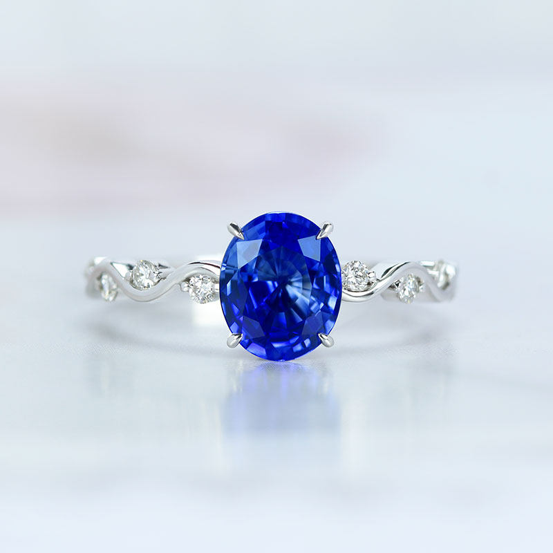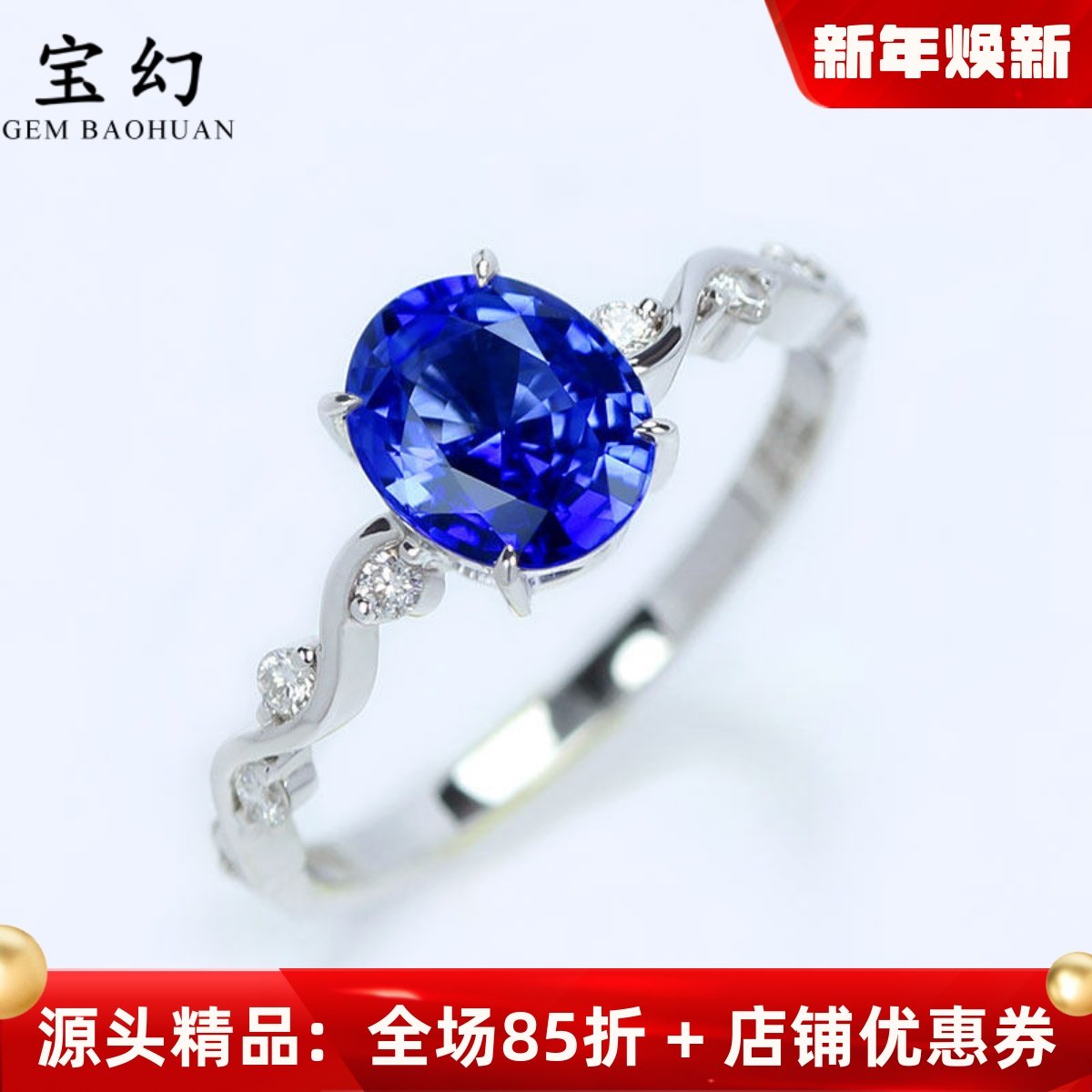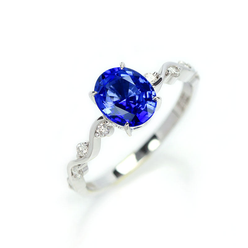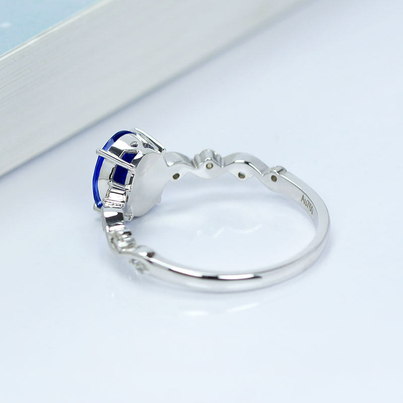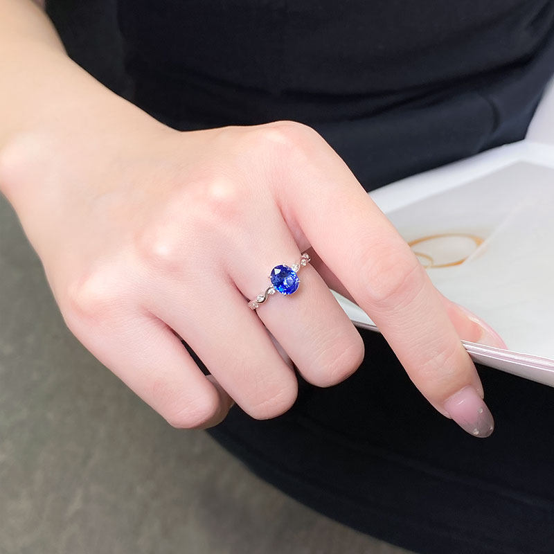 18K白金天然斯里兰卡矢车菊蓝宝石戒指 1克拉镶钻石S形手饰女款