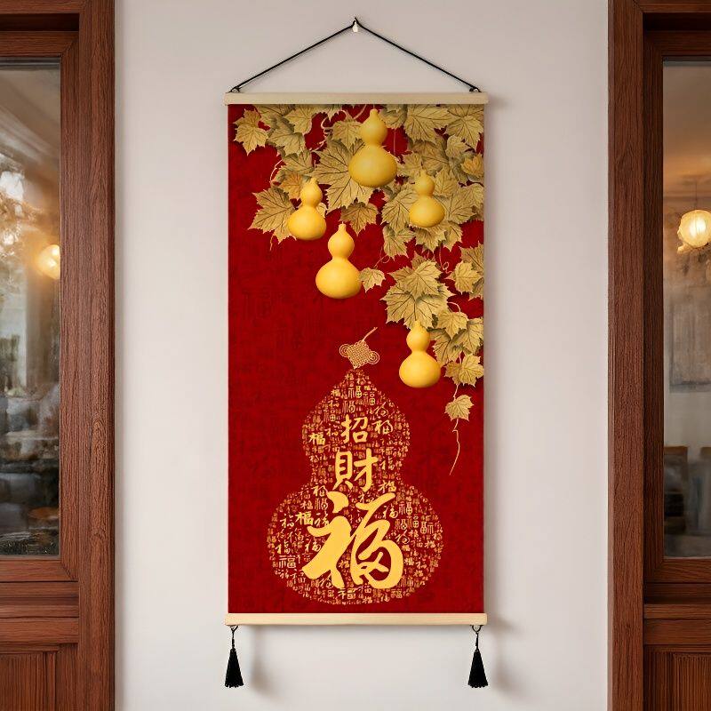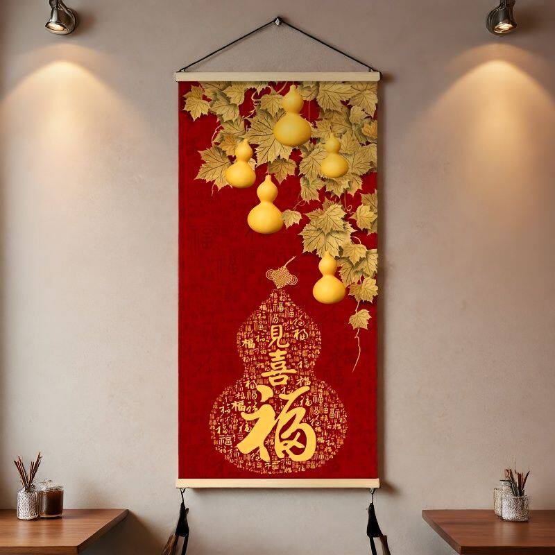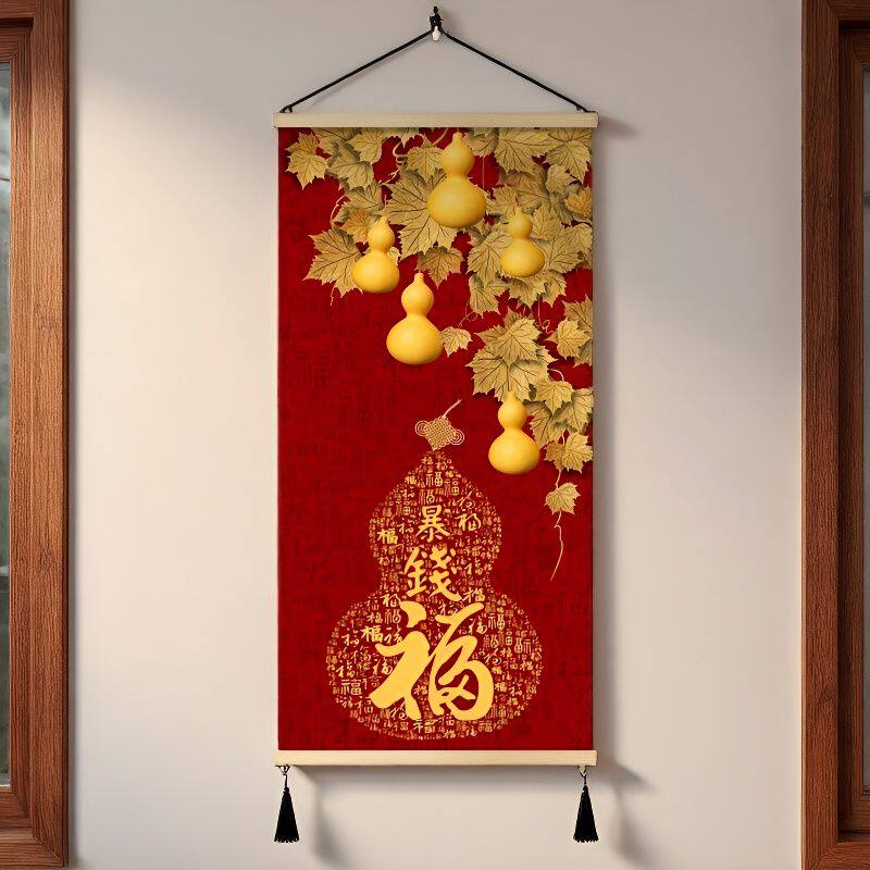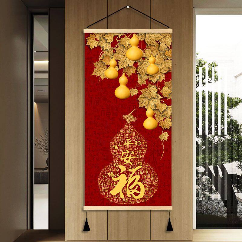 2026新款挂画新中式玄关装饰画葫芦卧室墙画客厅福字免打孔卷轴
