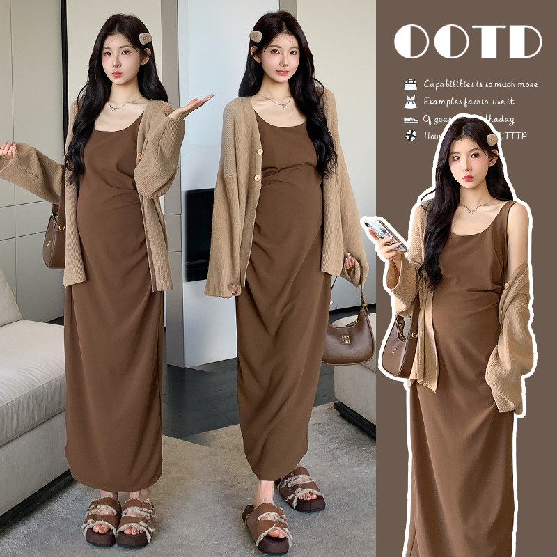 婧麒早春孕妇装2026新款孕妇连衣裙子背心裙春装孕期高级女春秋季