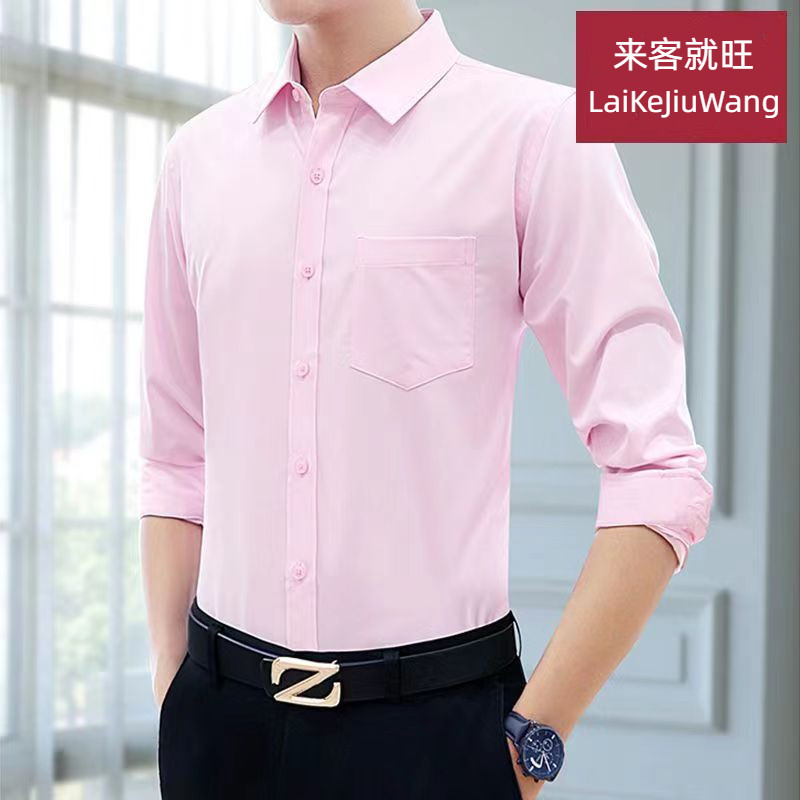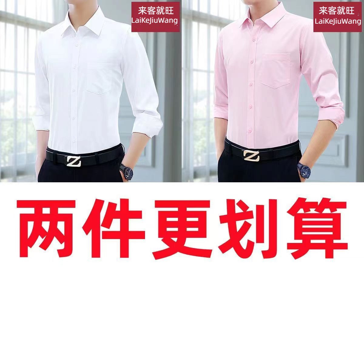 七多男士衬衫修身韩版秋季商务免烫纯色衬衣职业正装白衬衫男长袖