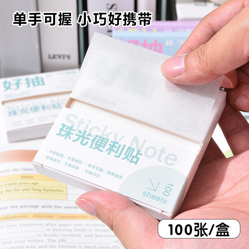 盒装便利贴抽拉式贴半粘错题高颜值记事贴做笔记透明便利贴