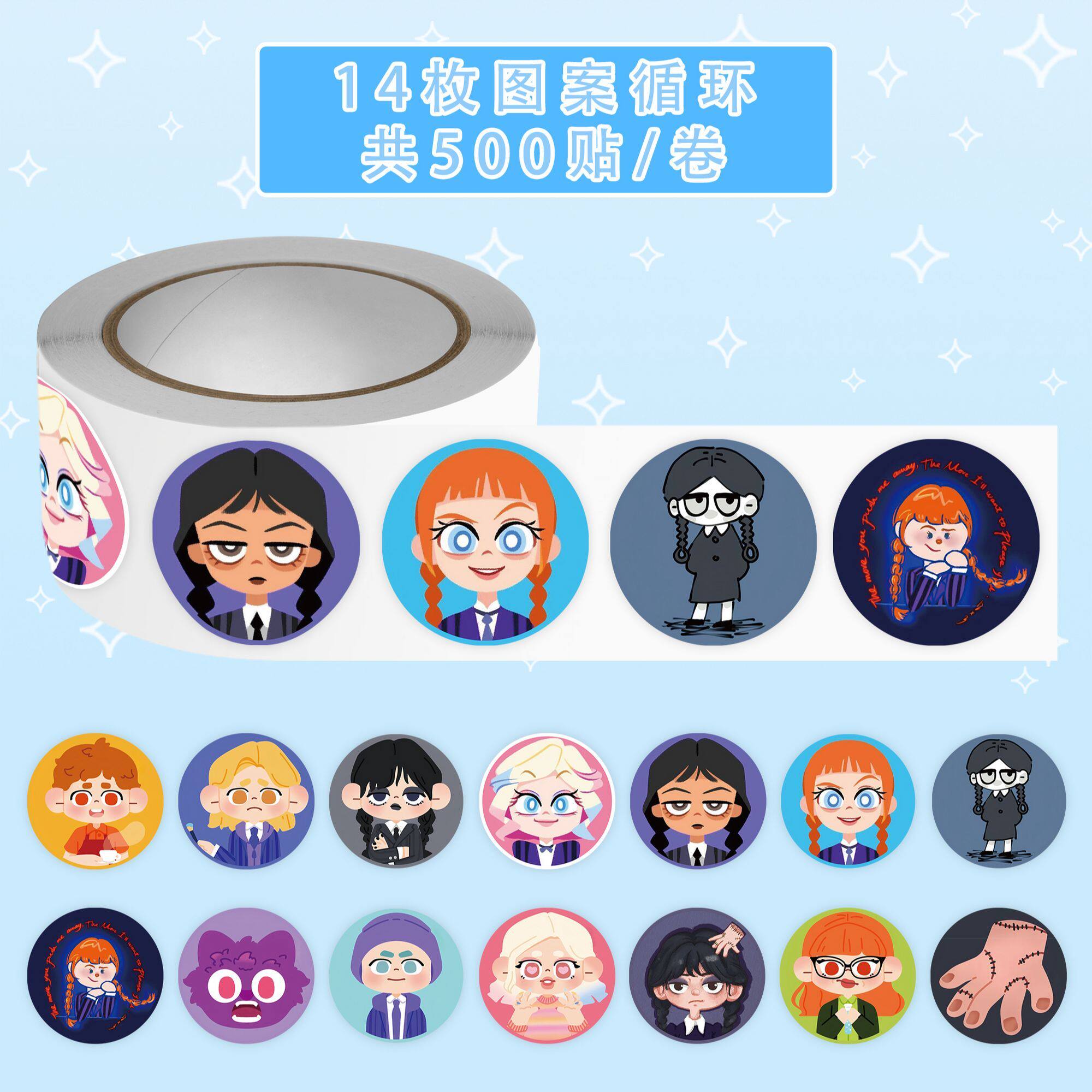 500贴新款星期三Q版卷卷贴热门影视小狼女星期三可爱周边diy贴画