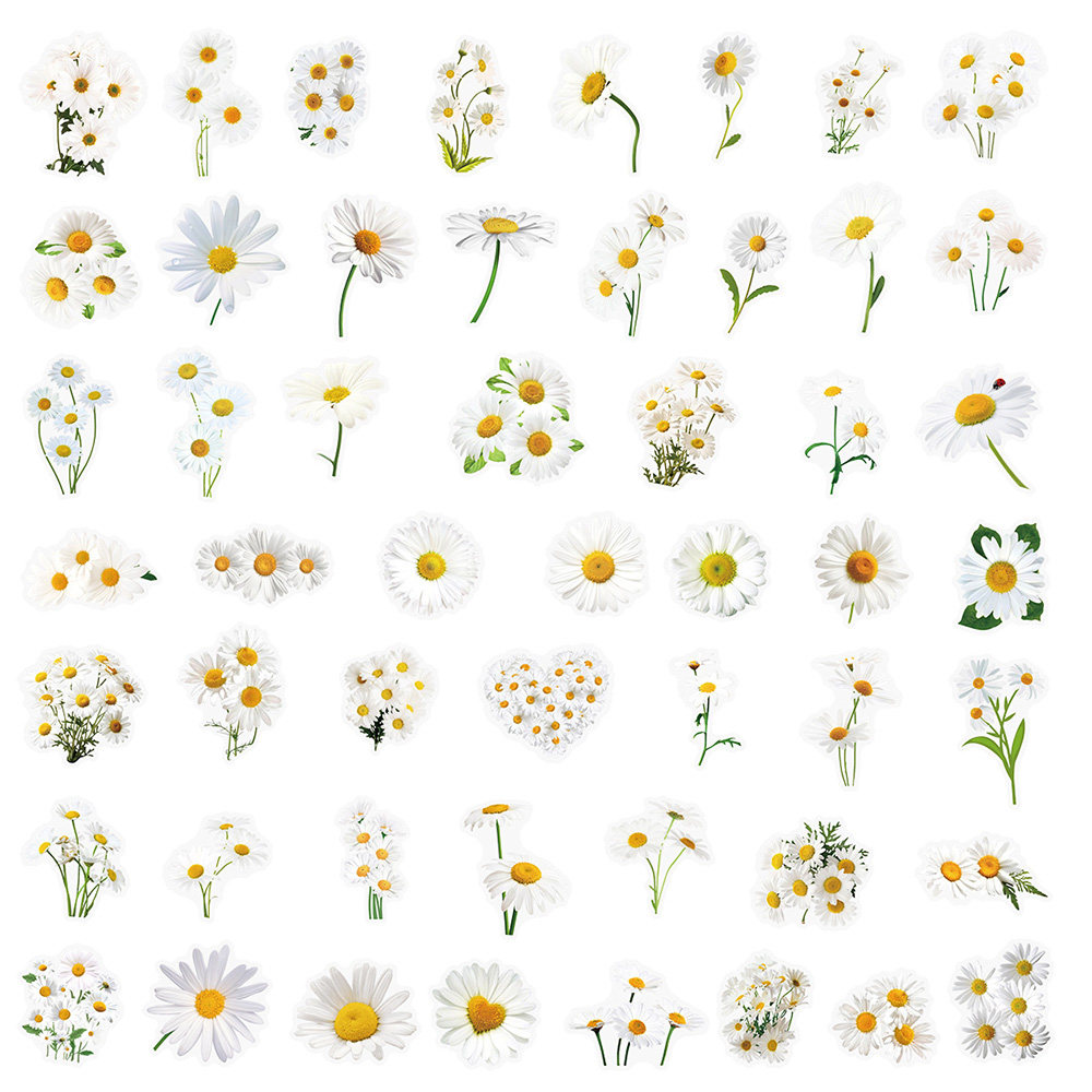 100张雏菊PET贴纸小清新精美植物花卉创意diy手账桌面装饰贴画