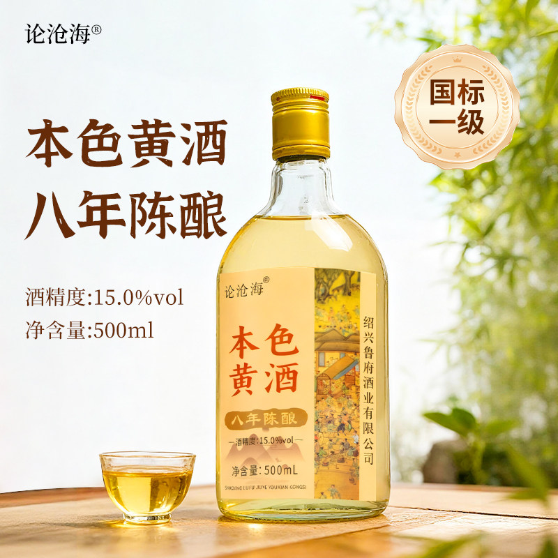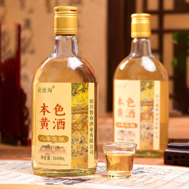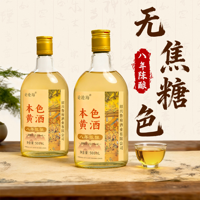 绍兴产黄酒八年花雕酒整箱15度500ml老酒本色手工焦糖色干型陈酿