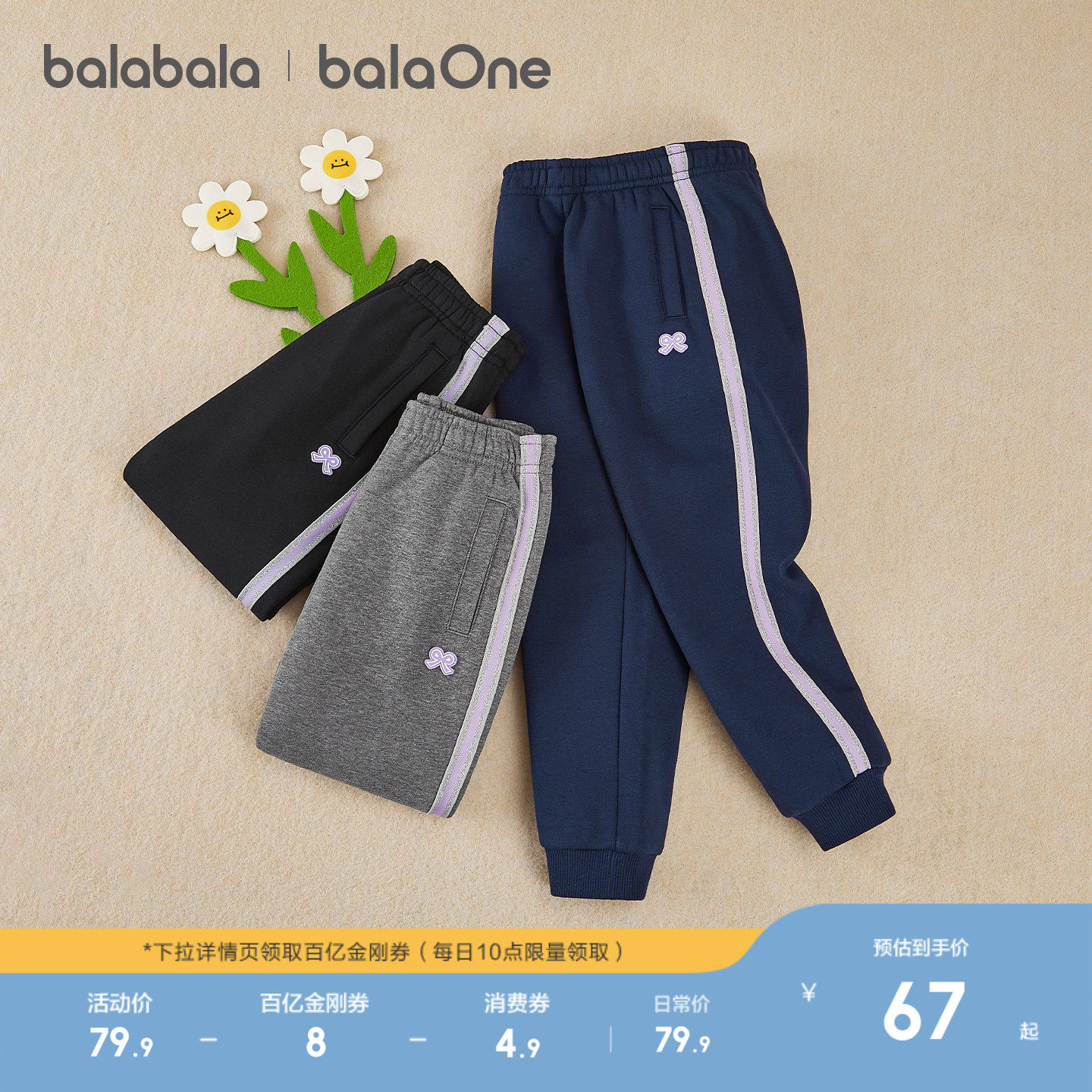 巴拉巴拉童装女童加绒运动裤子2025秋冬装新款加厚保暖儿童长裤潮