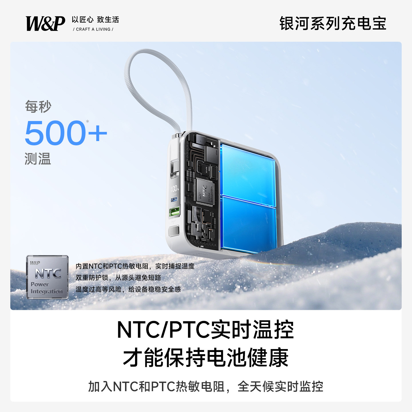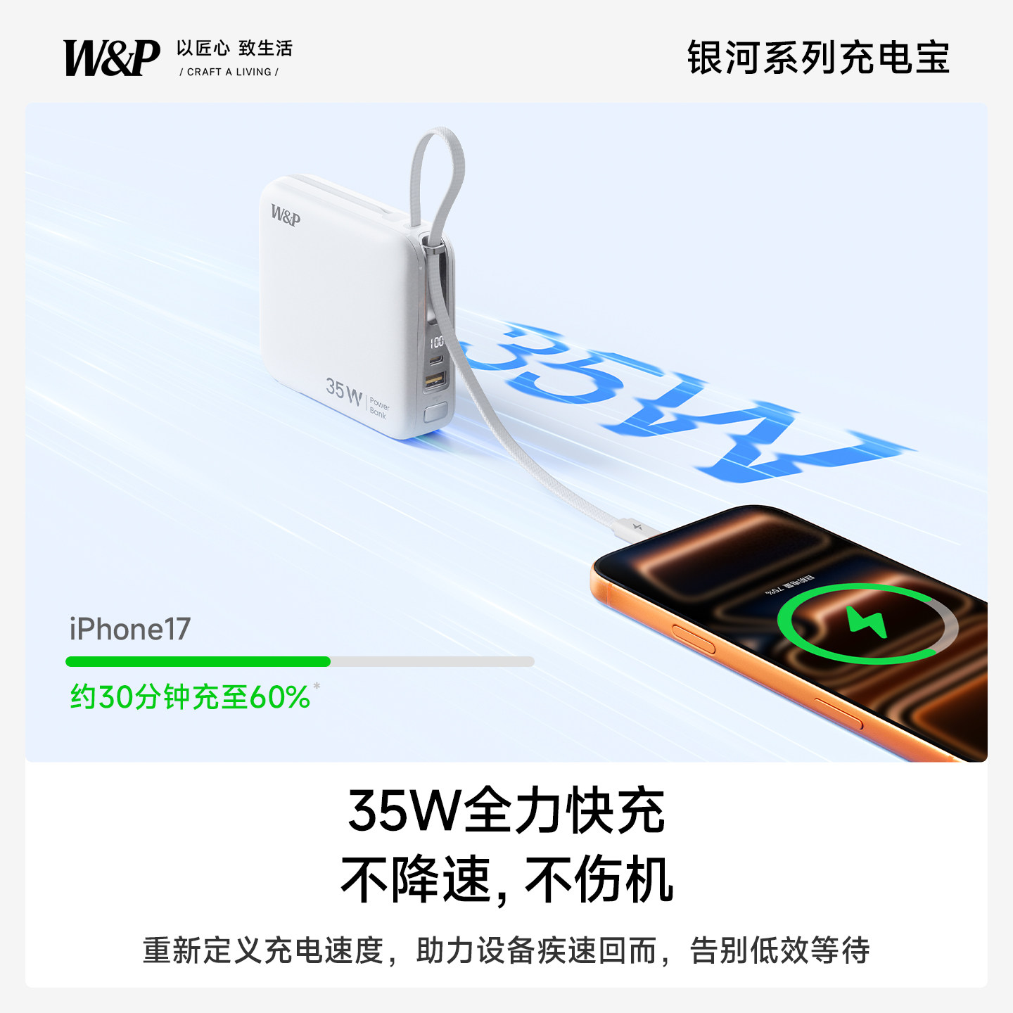 【国家3C认证充电宝可上飞机】W&P2026新款自带线插头20000毫安大容量35W快充三合一适用苹果17华为移动电源