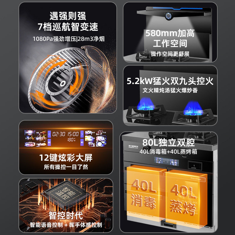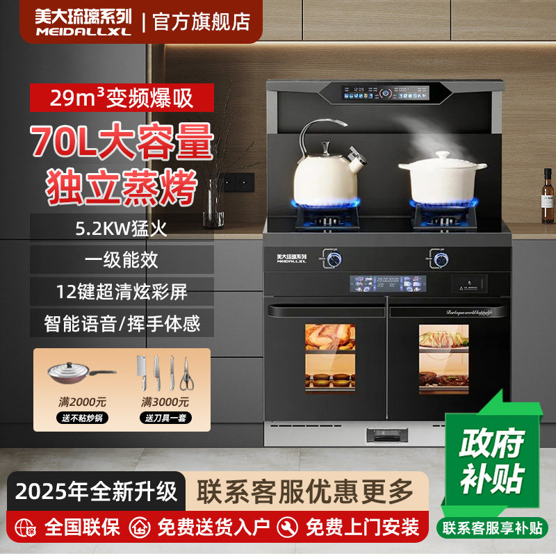 美大琉璃系列官方旗舰店集成灶蒸烤箱消毒一体侧吸节能十大油烟机
