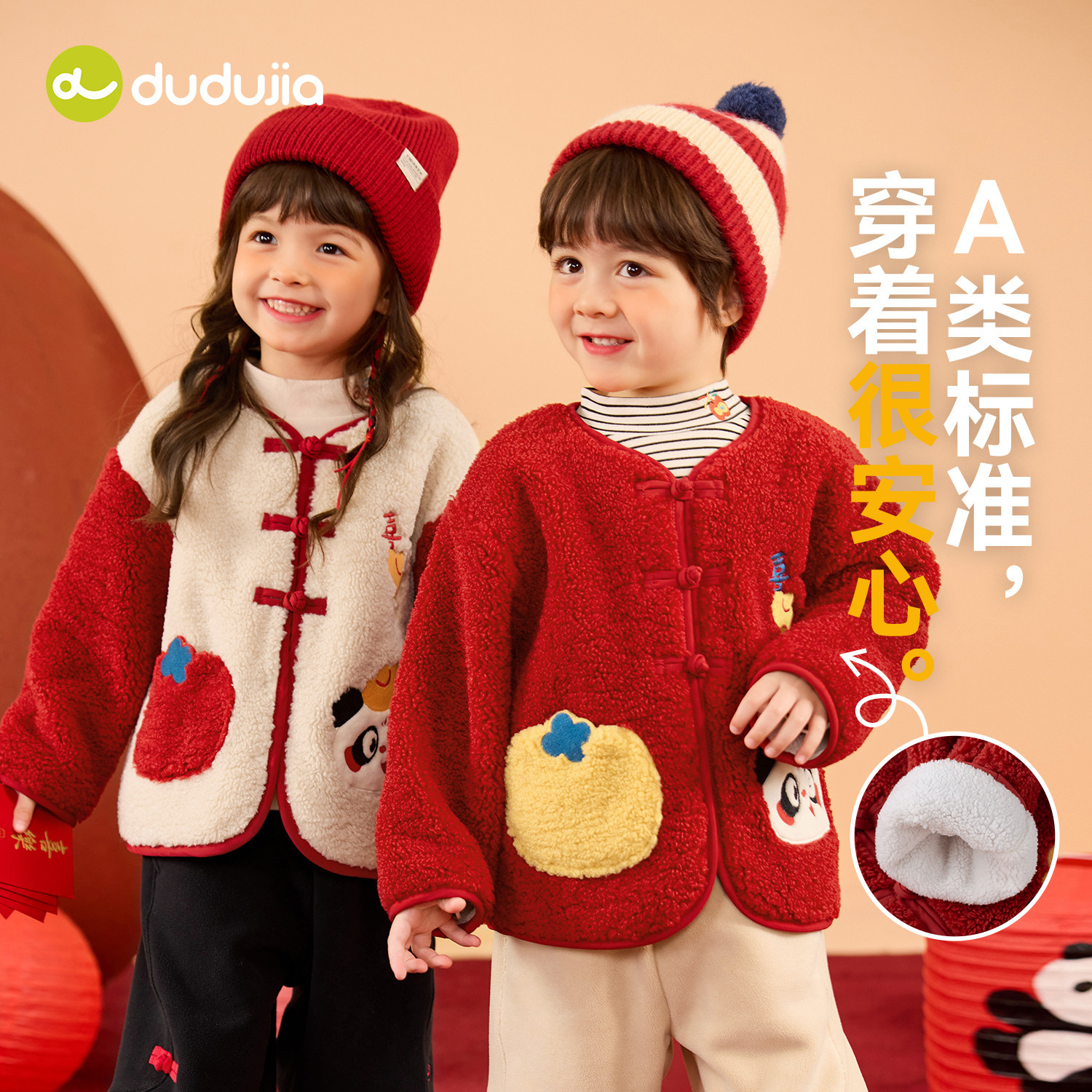 dudujia儿童外套唐装喜庆宝宝拜年冬装上衣男童年装喜庆女童衣服a