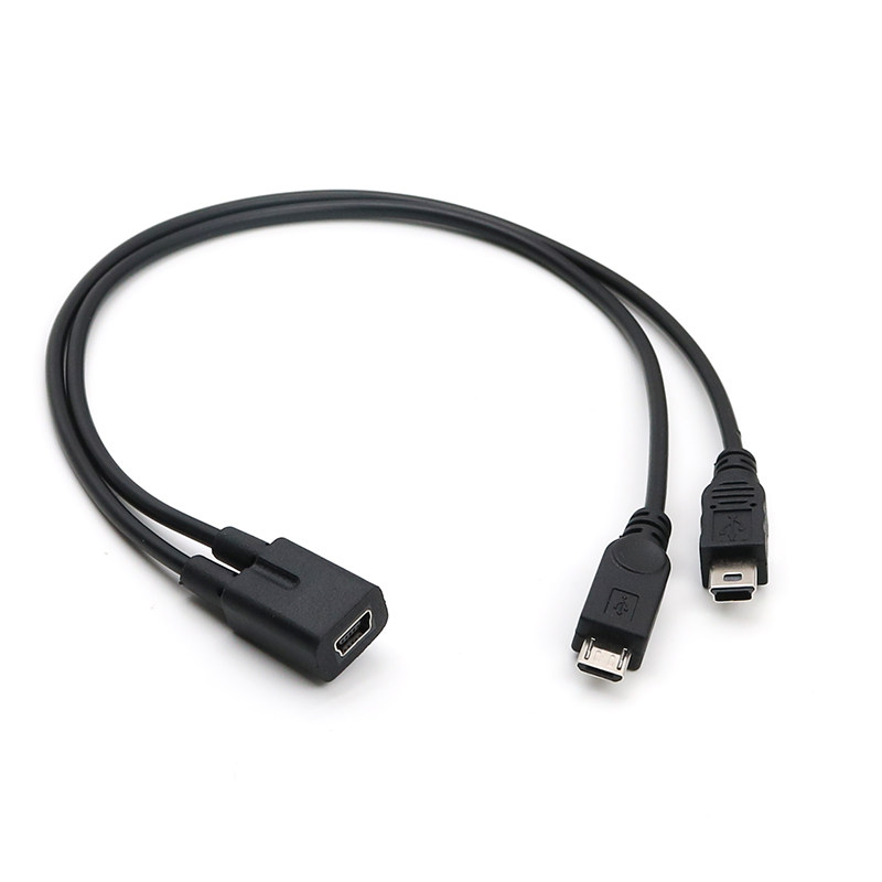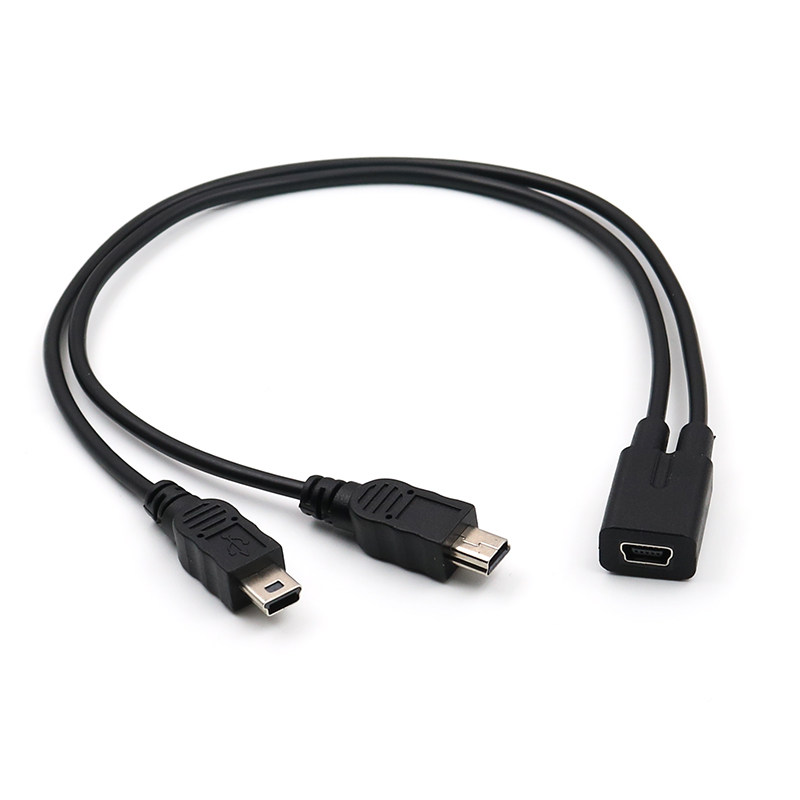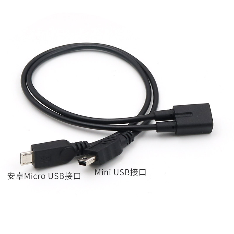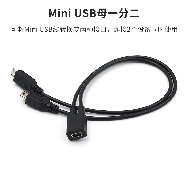 Mini USB母一分二T型公头行车记录仪导航仪5p一母分二公供电线电源线typec一拖二双迷你两个T口安卓micro充电