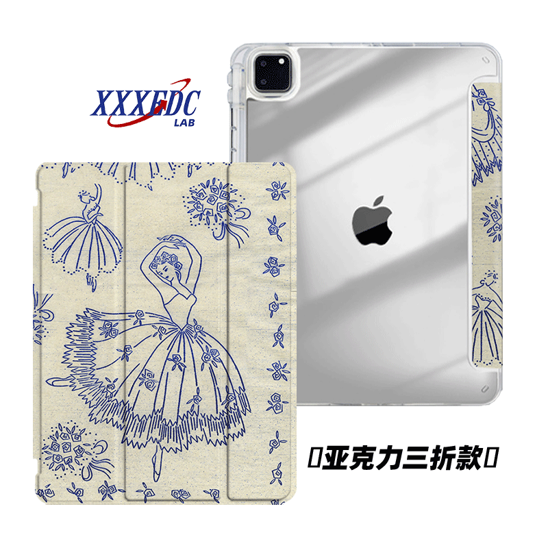 原创小众艺术线条芭蕾舞女适用11代2025款air7ipadpro11寸三折ipad壳防弯亚克力9代10.2寸air4/5/mini7带笔槽