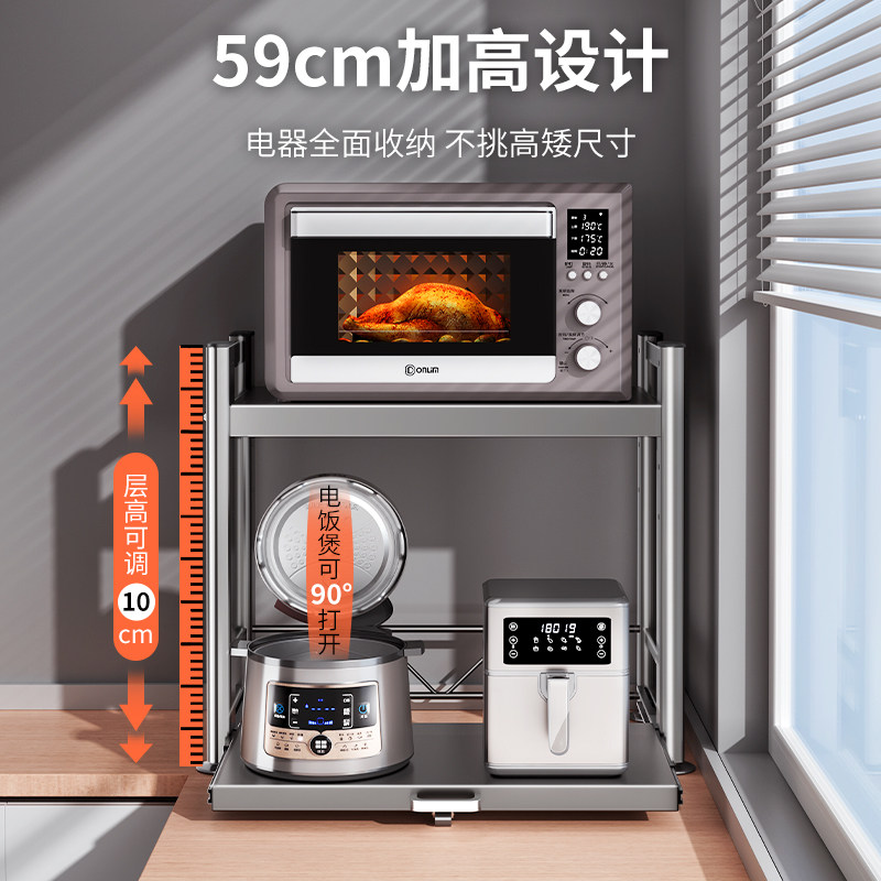 厨房微波炉置物架多功能抽拉式台面电饭煲架家用烤箱多层收纳支架