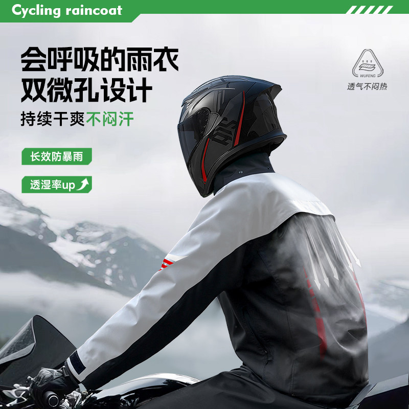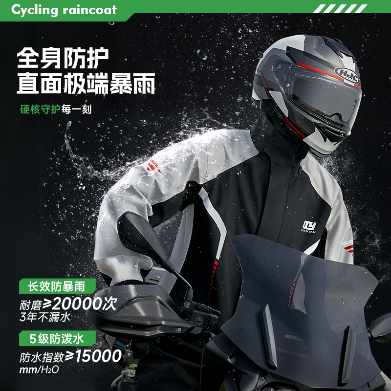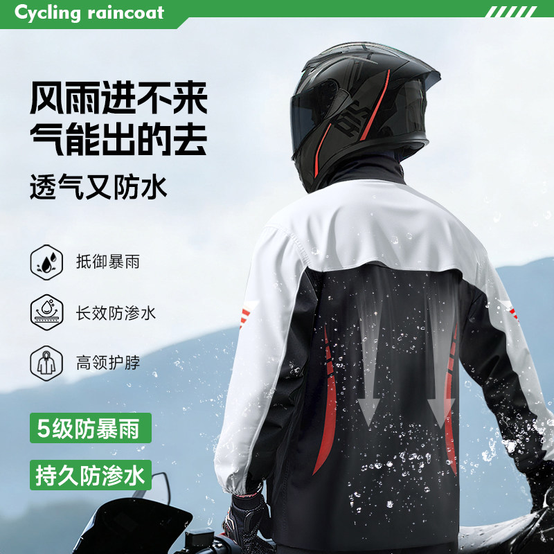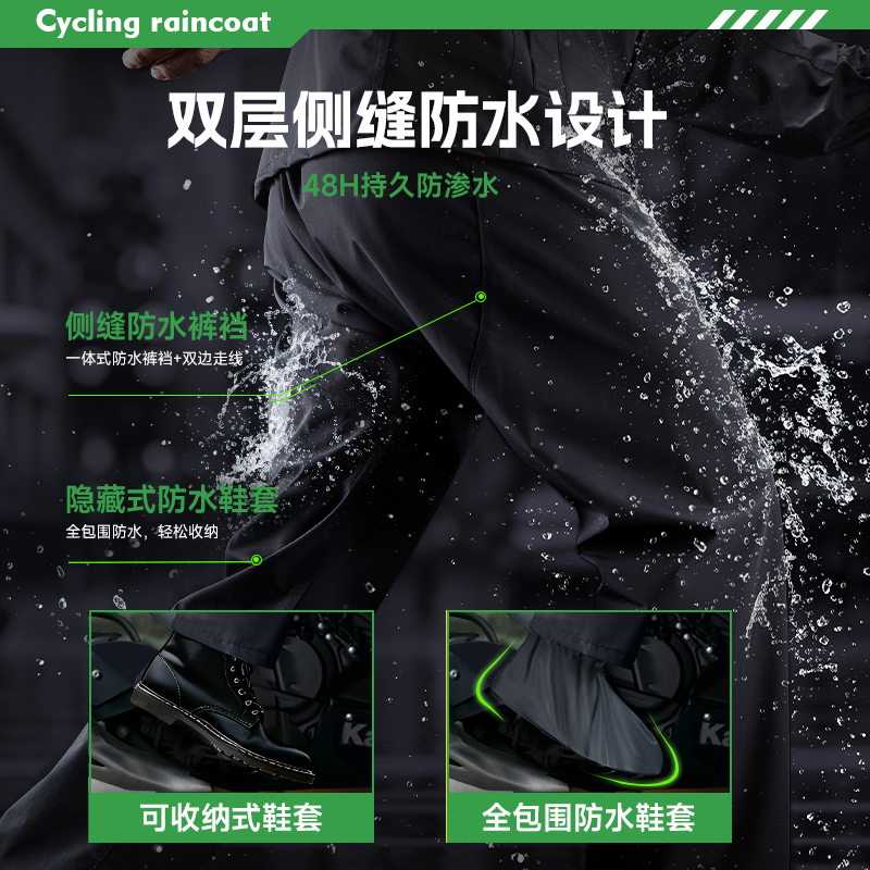 专业级防暴雨骑行雨衣,四重门襟防护不渗水