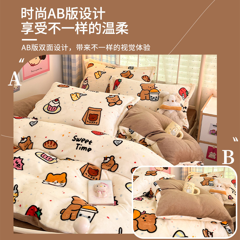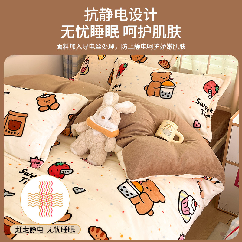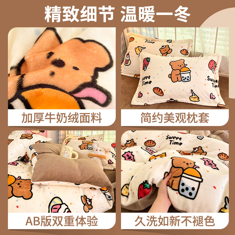 冬季加绒被套单件牛奶绒珊瑚绒宿舍单人单独毛绒被罩1.5米四件套3