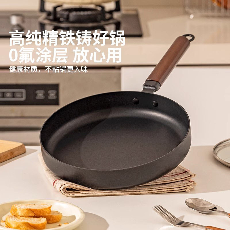 平底锅不粘锅家用深煎炒锅无涂层铁锅煎饼煎蛋牛排煎锅煤气灶专用