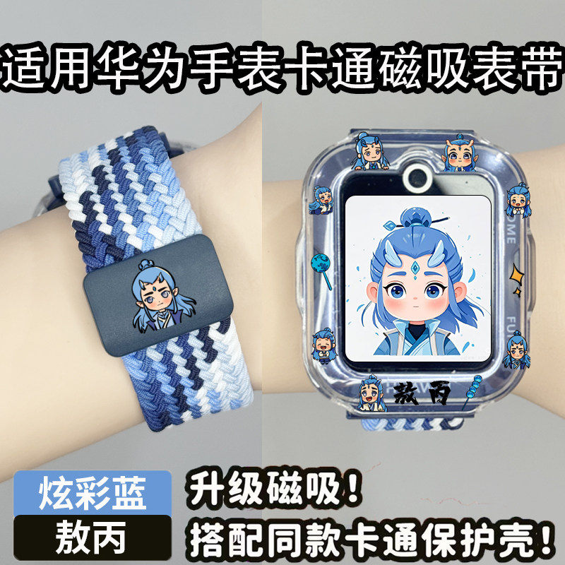适用华为儿童电话手表表带4pro/5x/5xpro/5pro/4x星耀版/3pro超能版/3s/华为5活力版磁吸编织运动手表带配件