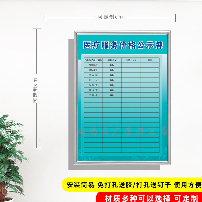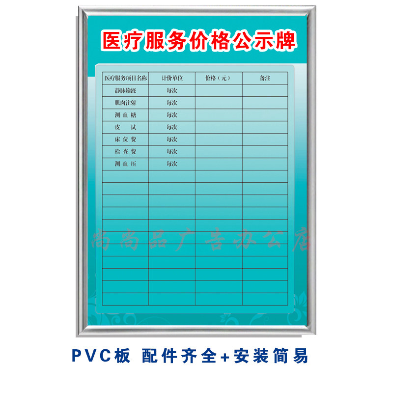 诊所门诊医疗服务价格表公示牌皮试检查输液可填写收费信息展示栏
