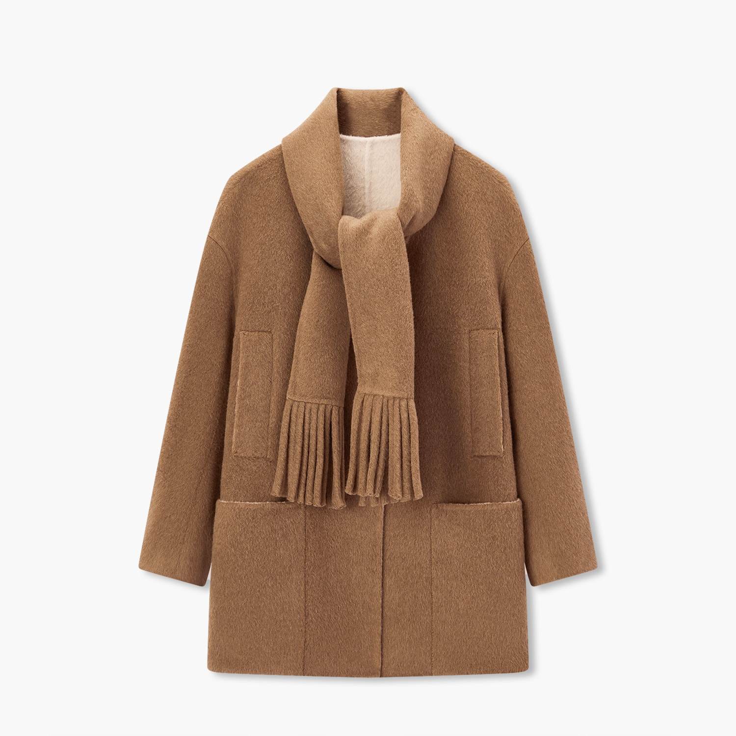 爱居兔绵羊毛温暖柔软双面呢大衣2025年冬季新款女围巾中长外套