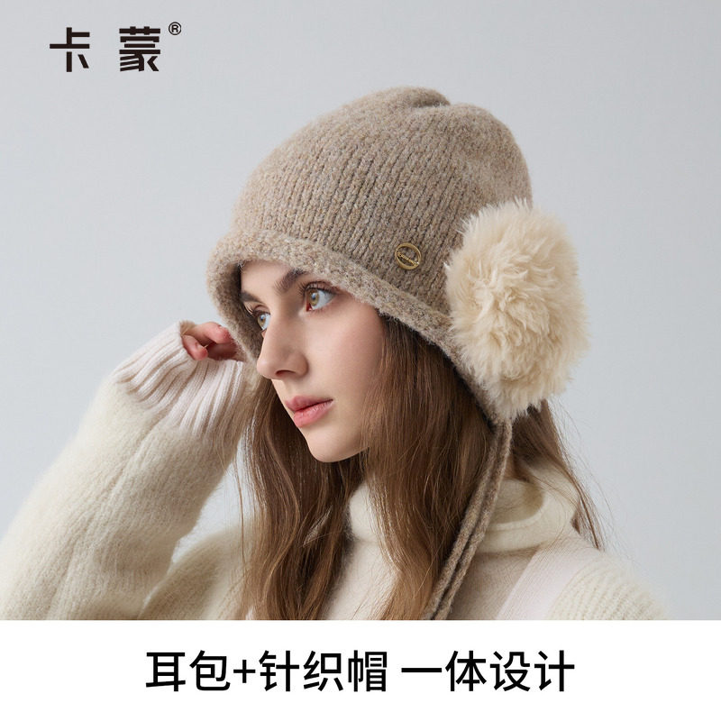 卡蒙帽子耳罩一体防风耳包东北防寒保暖针织帽护耳帽毛线帽女士冬