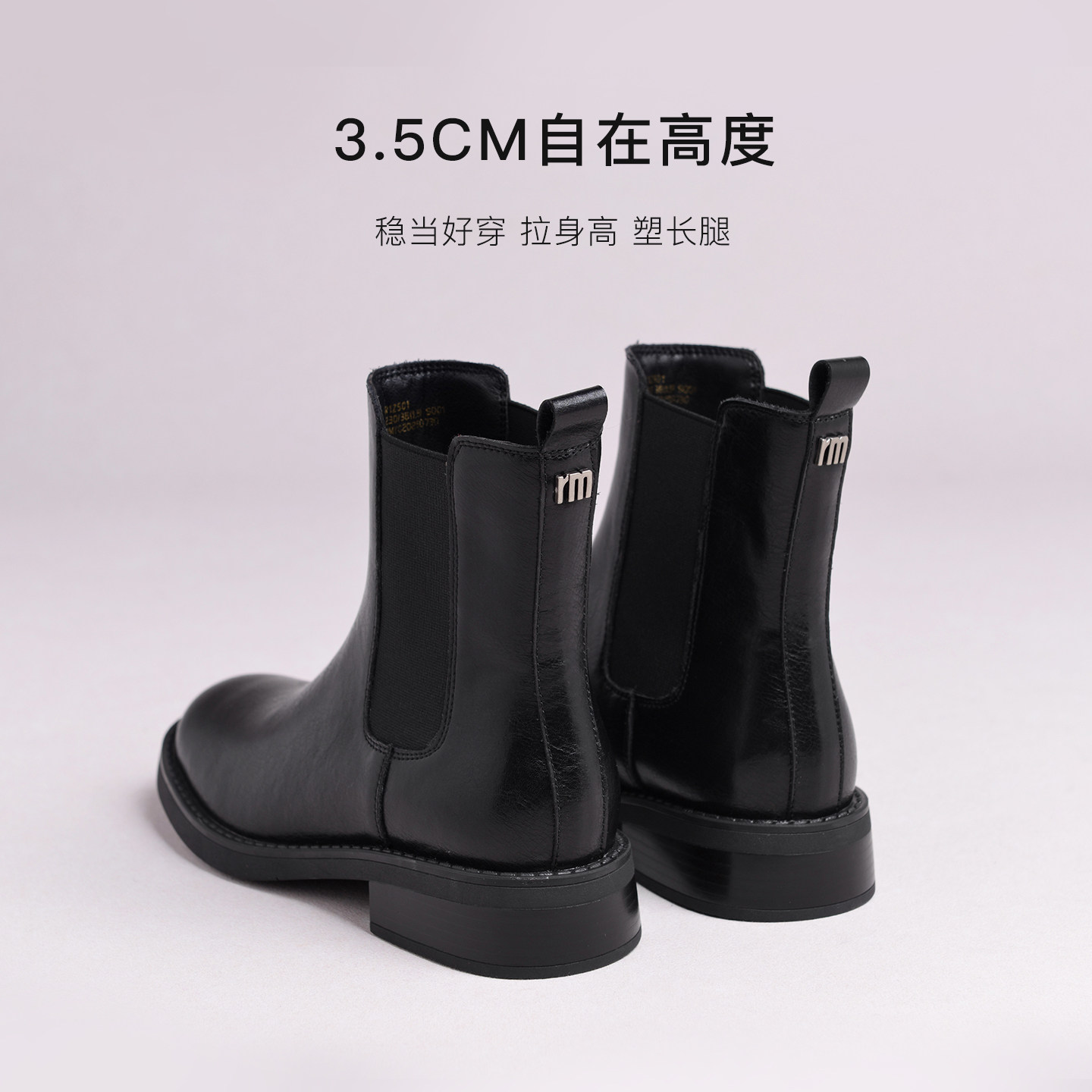 天美意复古厚底加绒切尔西短靴女鞋子瘦瘦靴时装靴皮靴2025冬新款