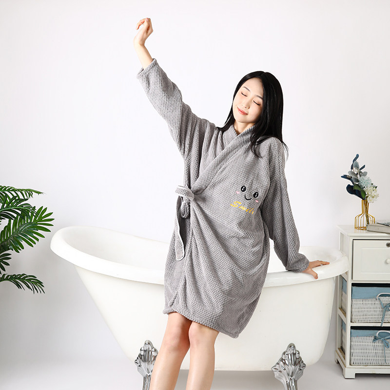 秋冬浴袍可穿浴巾女家用珊瑚绒吸水柔软速干浴裙洗澡睡袍睡衣连帽