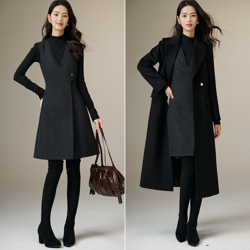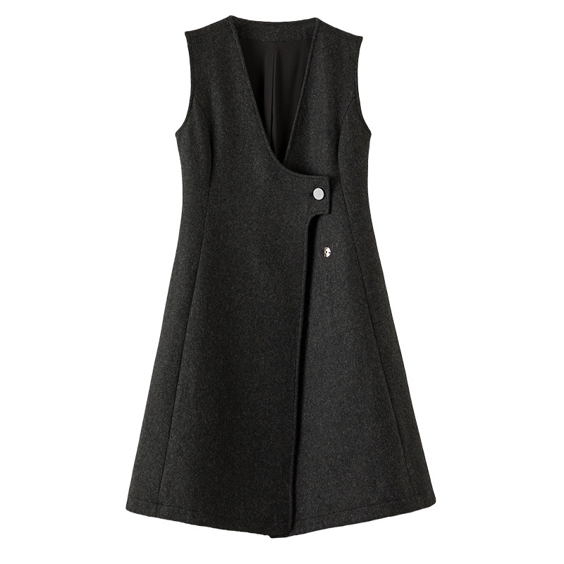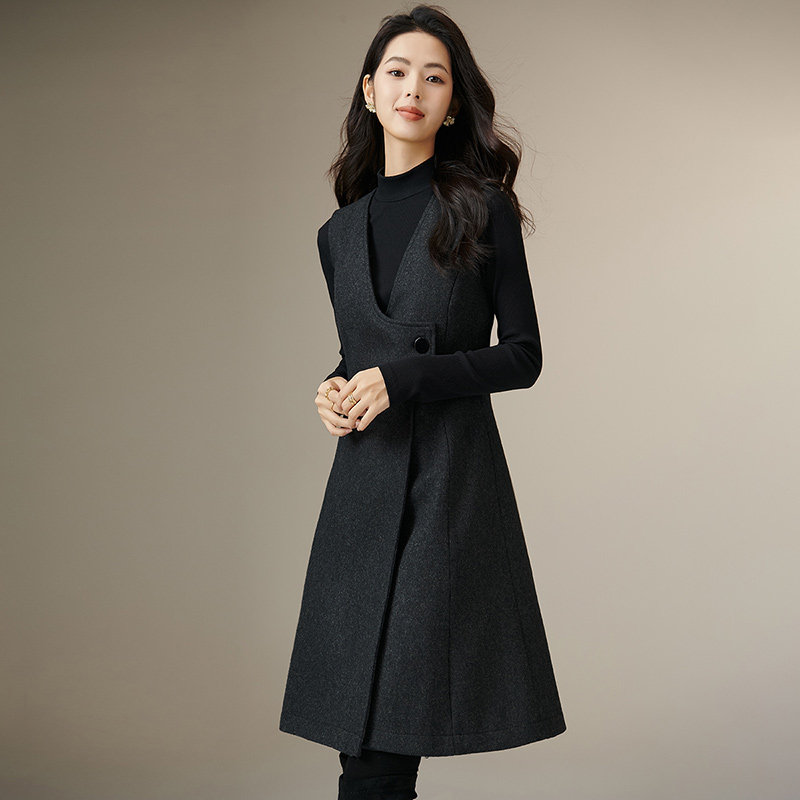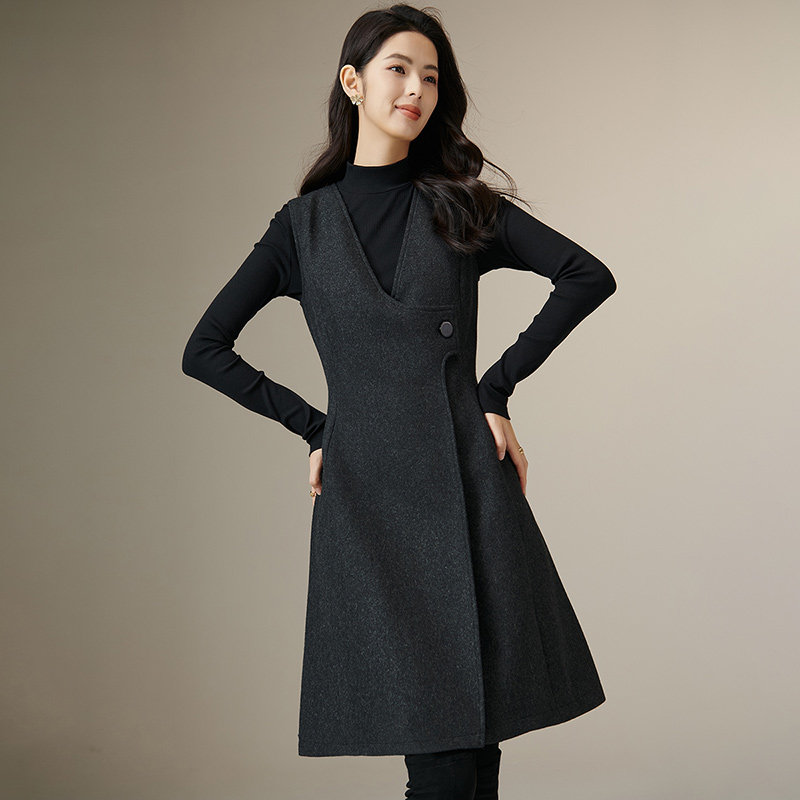 晚白气质V领绵羊毛打底裙子修身气质连衣裙女2025新款冬小个子