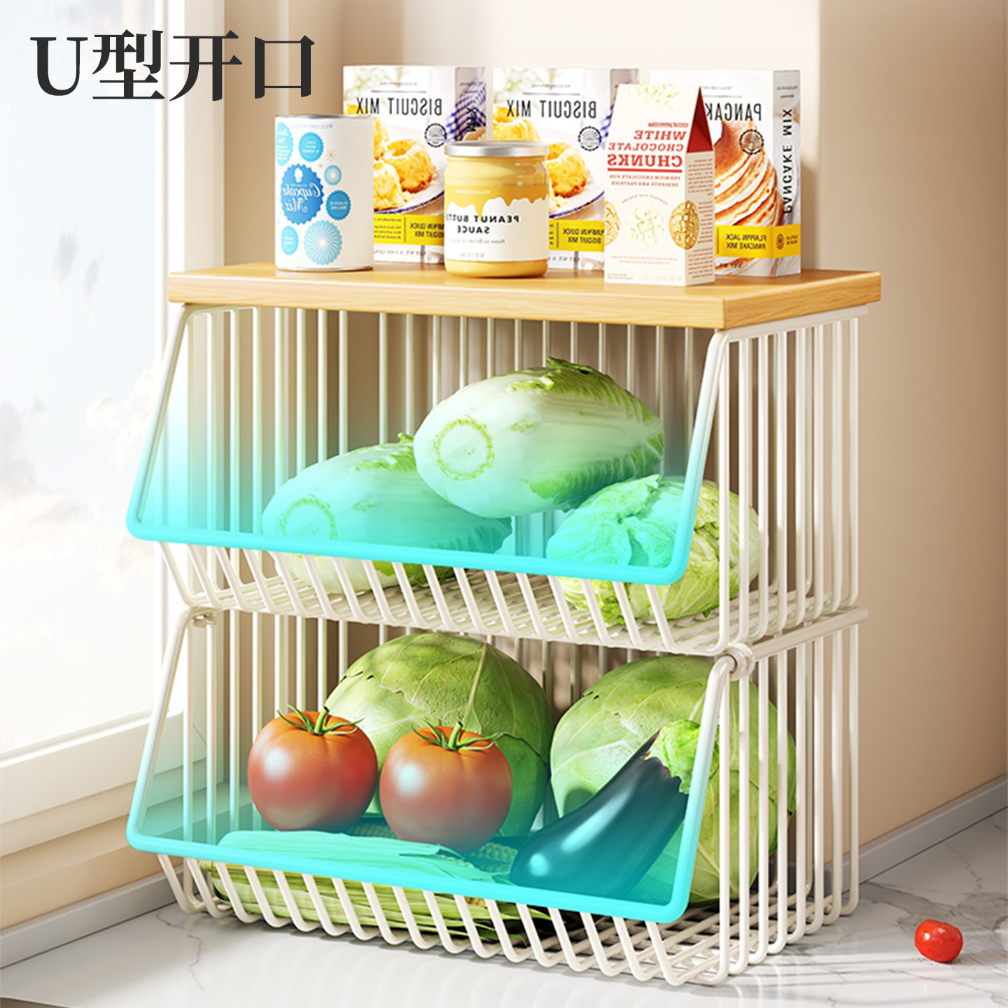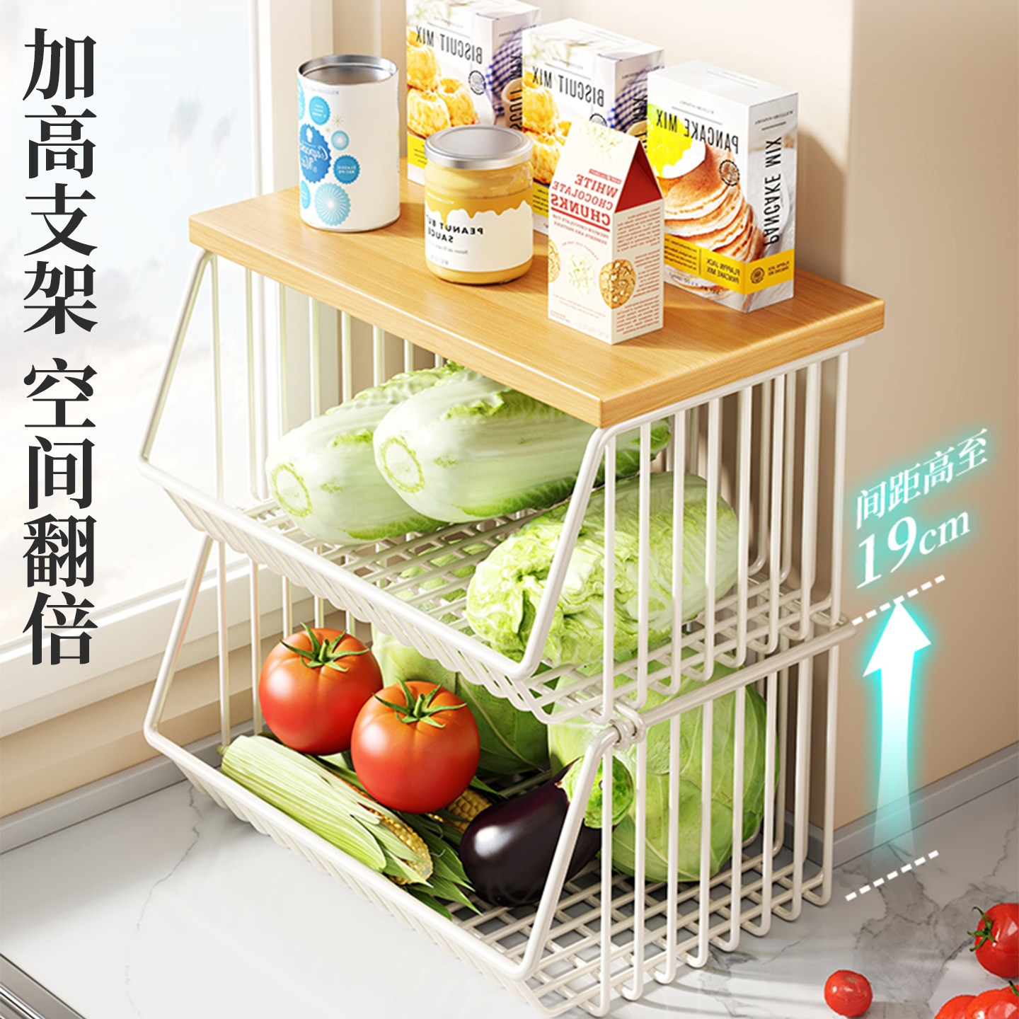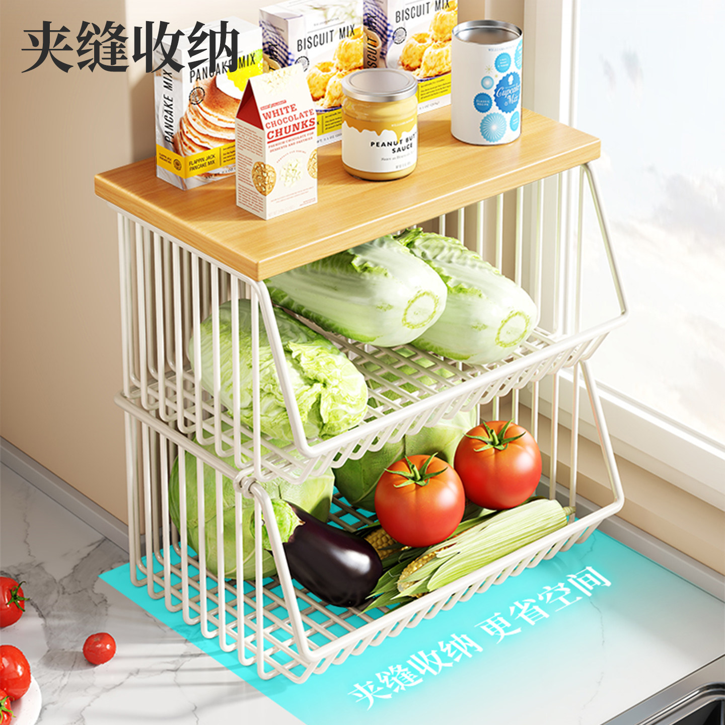 蔬菜筐餐边柜零食置物架厨房台面多层水果篮客厅桌面杯收纳盒双层